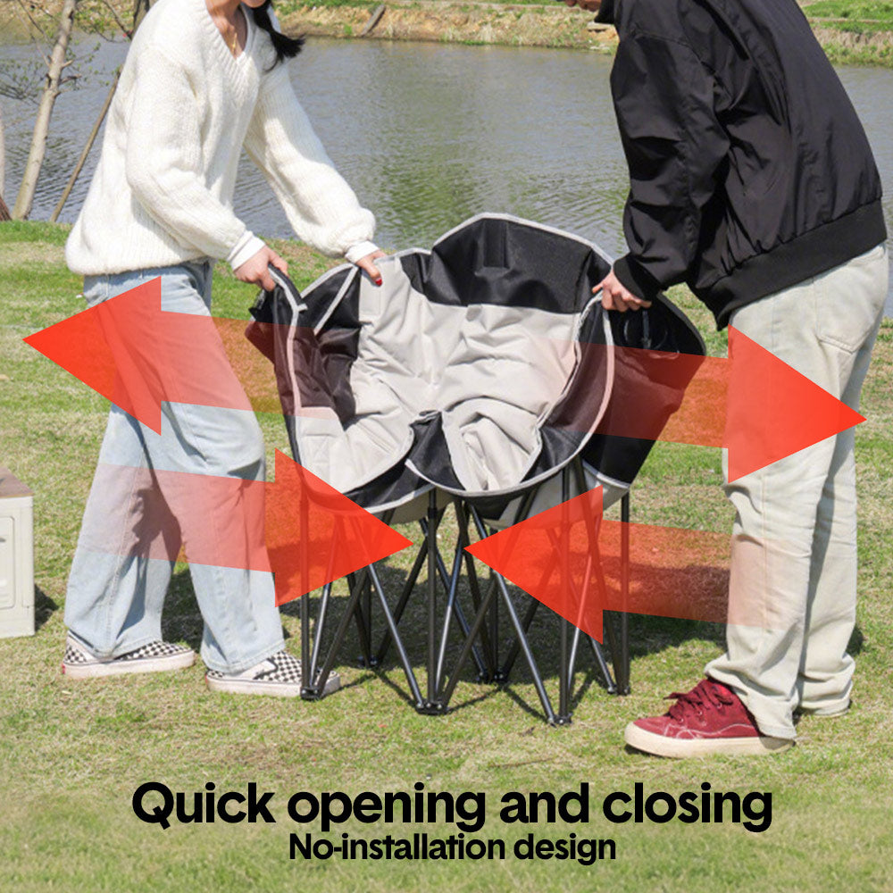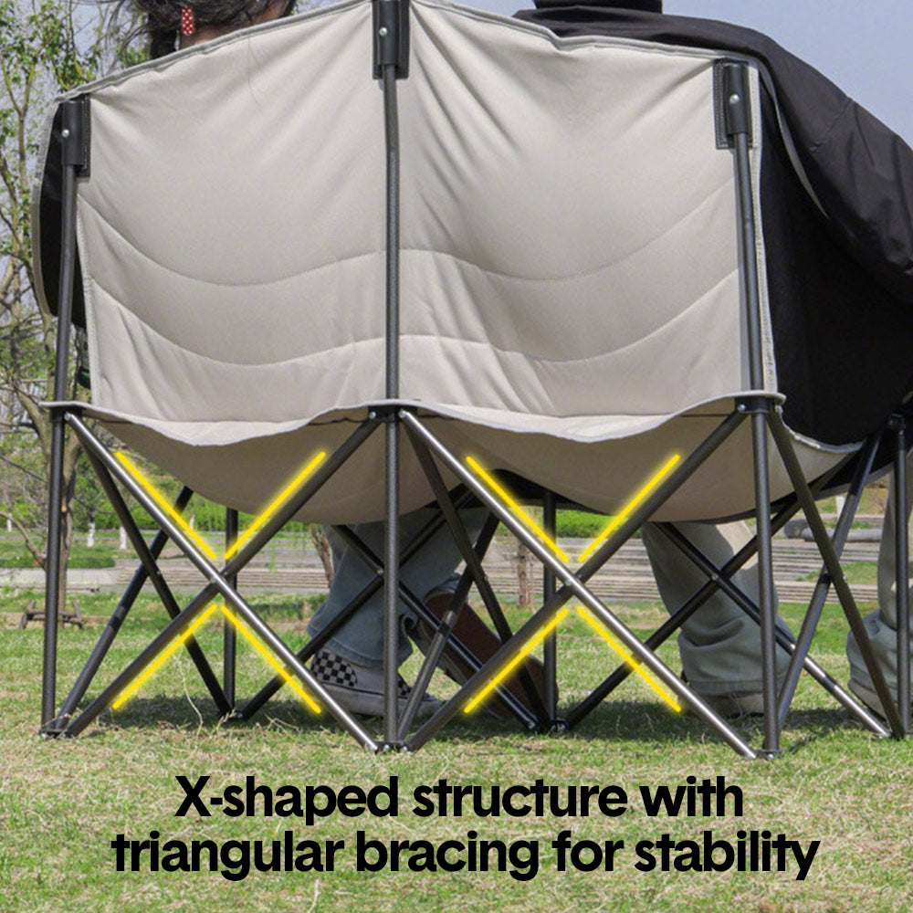 Whether at a campsite, picnic, beach, barbecue, or backyard gathering, this double camping chair provides spacious seating for two adults, making it a great choice for couples, friends, or families who want to relax together. Its folding and ergonomic design will provides both superior comfort and easy portability for your outdoor adventures.