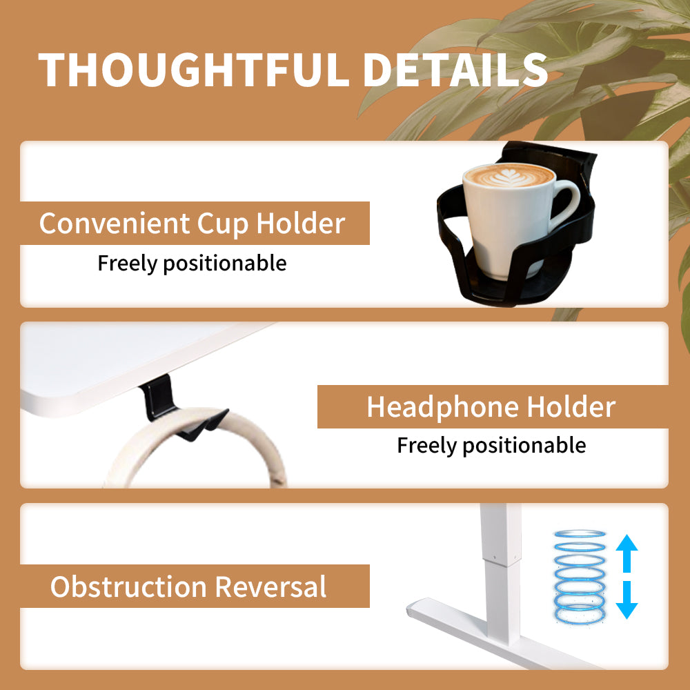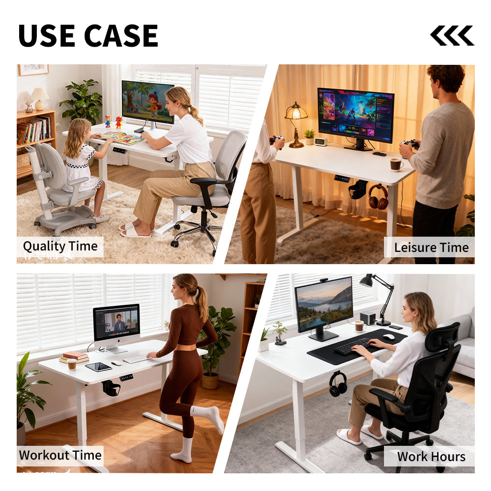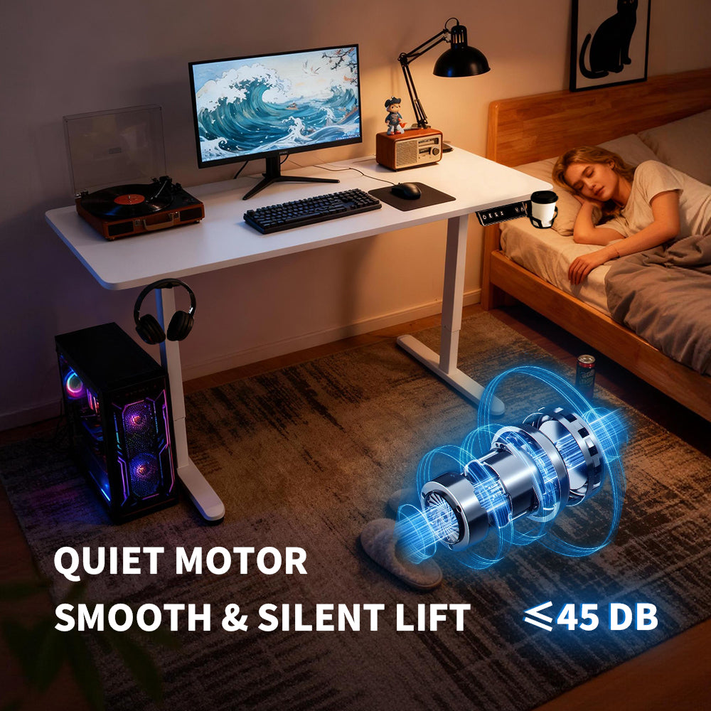 With a powerful motor, this electric standing desk helps you switch effortlessly between sitting and standing, easing fatigue, improving posture, and boosting productivity throughout the day. It adapts to users of different height, making long hours at the desk more comfortable. Perfect for home offices, gaming setups, or professional workspaces.
