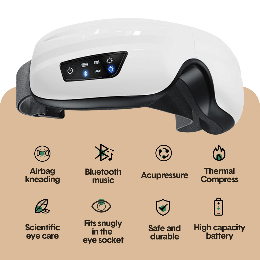 Experience the comfort with our Electric Eye Massager, designed to help with migraines, dark circles, puffiness, and overall eye care. Simple controls and automatic timing make it easy to integrate into your daily routine.Its compact design makes it easy to use at home, in the office, or while traveling.