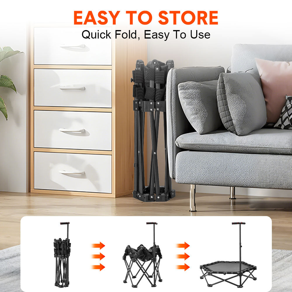 This trampoline features a sturdy steel frame and a high-elastic net, supporting up to 150kg/330 lbs. Its nest structure further enhances stability and prevents tipping. The padded T-handle adjusts to three different heights, making it suitable for different users. Non-slip rubber caps help reduce sliding while protecting your floors from damage.