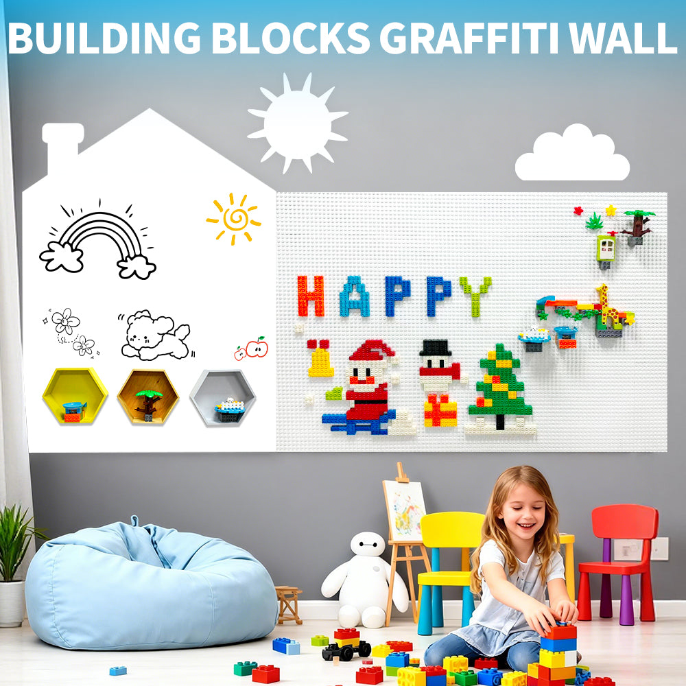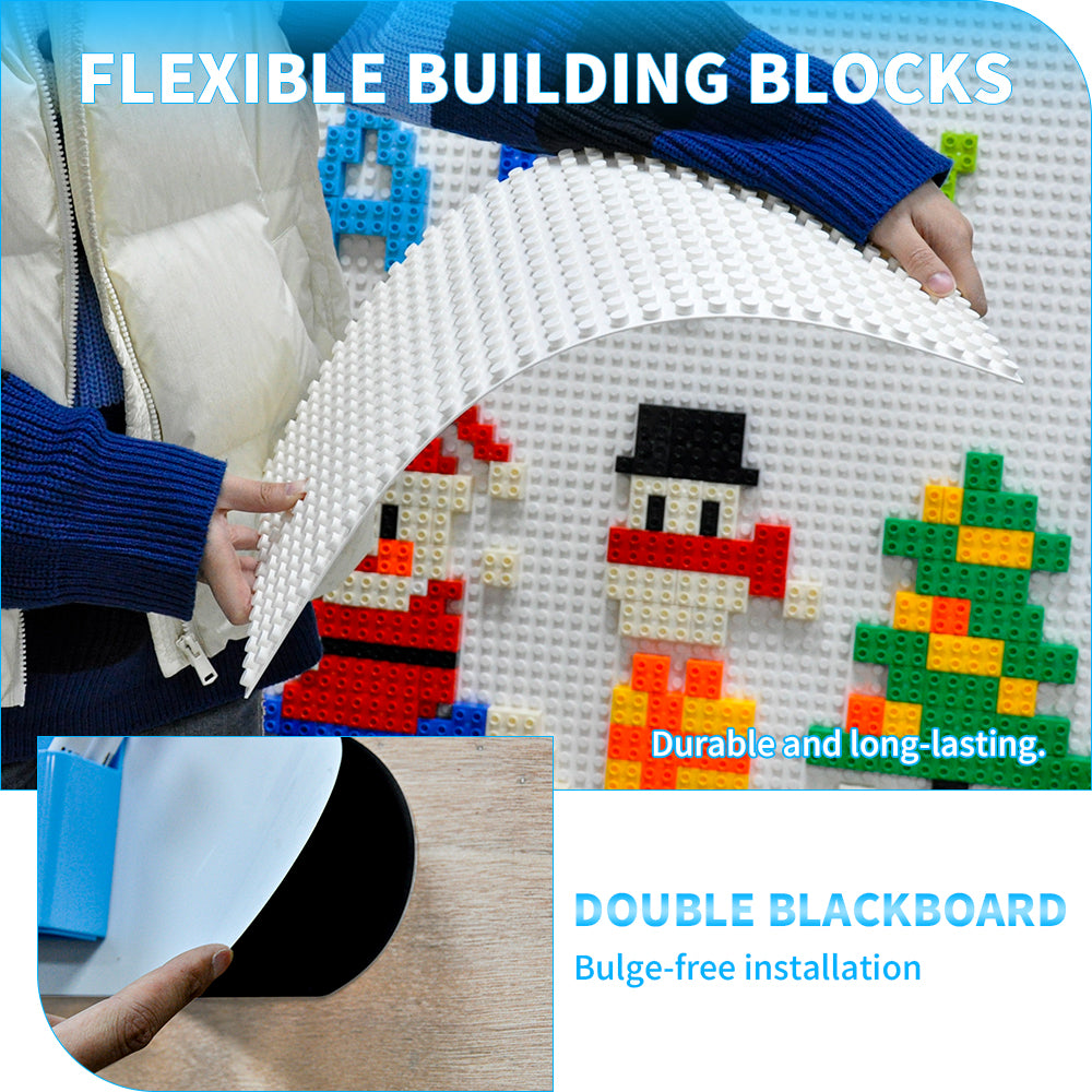 Give your kids a space where creativity, learning, and play come together. This soft and large dual-layer magnetic block wall combines a magnetic whiteboard for doodling and a brick-compatible base plate with 2,255 bricks for hands-on building. Perfect for almost any smooth surfaces in bedrooms, corridors, playrooms, classrooms, nurseries, and more.