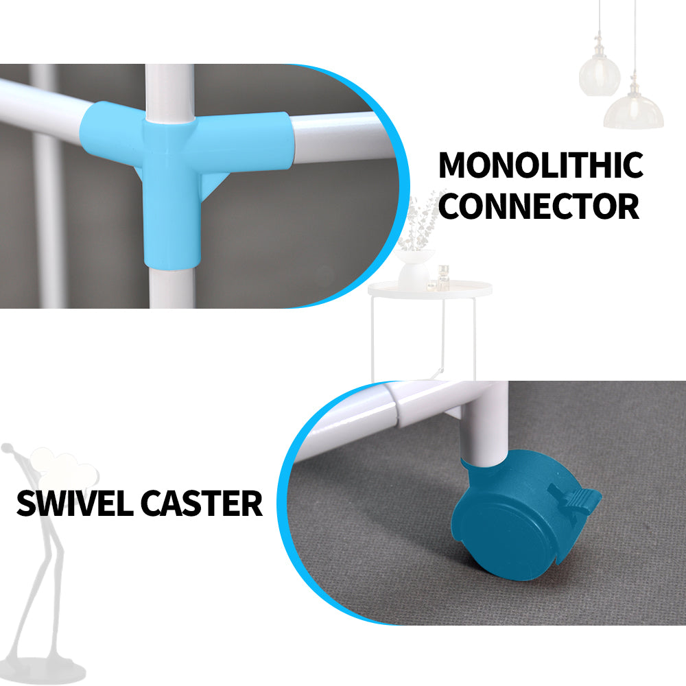 Combined with its large storage capacity, this clothes rack is equipped with smooth 360 rotating wheels, letting you rotate or move it around freely, and built-in brakes keep it securely in place when needed. Made from thickened metal tubes, the rack is sturdy and stable without wobbling even when fully loaded. Easy to assemble with clear instructions.