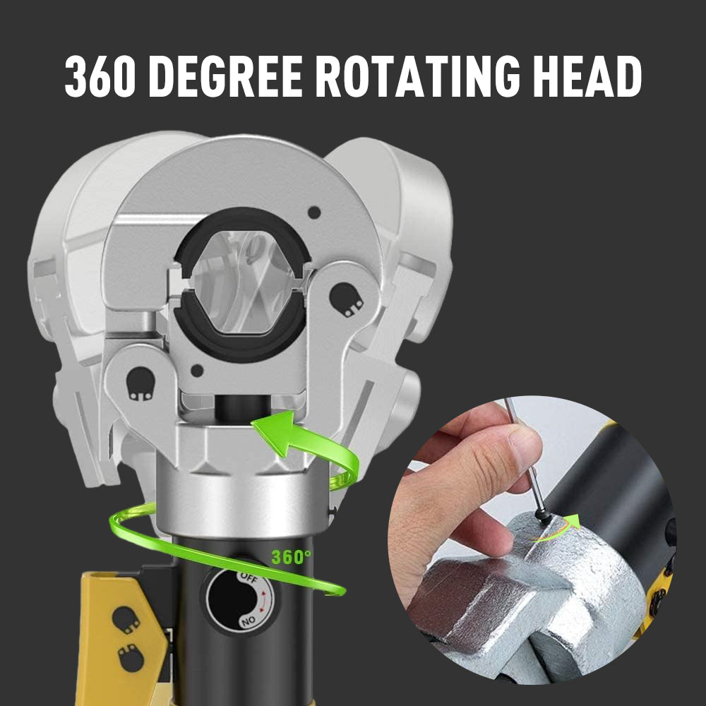 Introducing our hydraulic pipe crimper,a labor-saving plumbing tool set.Hydraulic cylinder provides powerful and effortless crimping for various tubes.It comes with changeable dies for use on stainless steel pipes.The 360° rotating head enhances usability in confined spaces.Easy to use and disassemble.