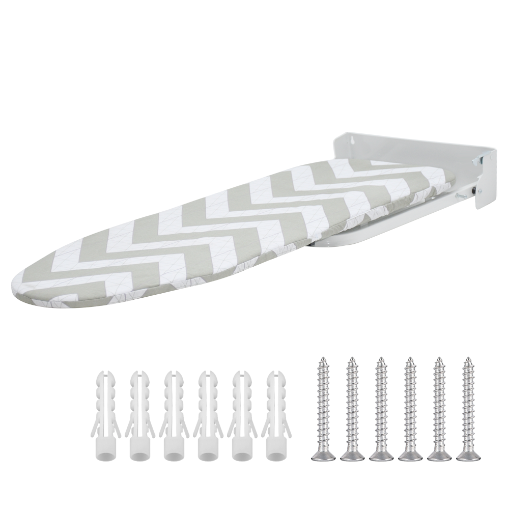 Made from a carbon steel frame, this ironing board offers long-lasting durability and strong stability. The internal support rod increases its weight capacity, while the buckle lock mechanism keeps it securely mounted to avoid falling. It folds compactly to save space when not in use. Installation is simple with all necessary materials included.