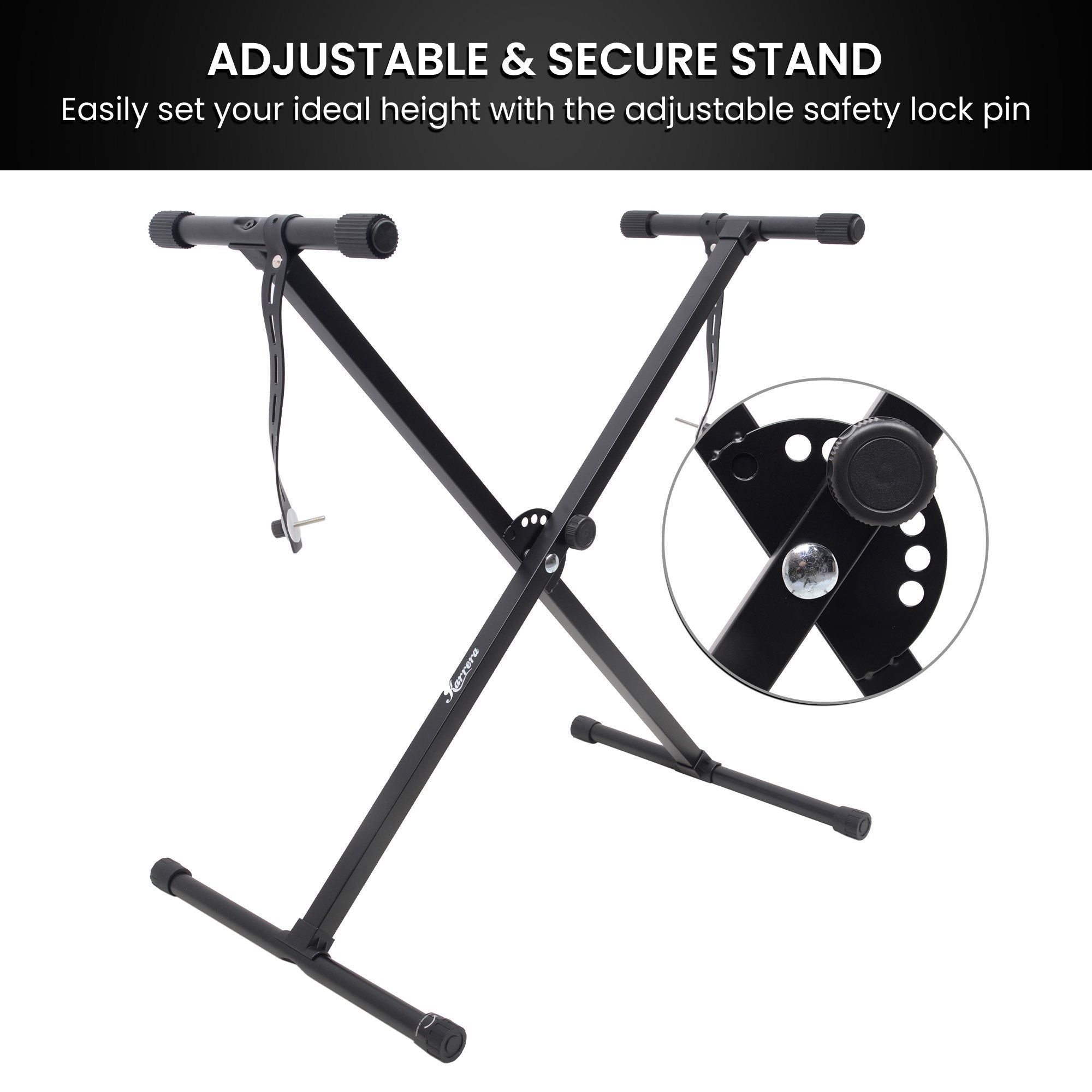 Unlock our musical talent with this immersive Karrera electronic keyboard! An excellent option for both beginners and experienced players, its touch-sensitive keys allow for personal expression, while the LCD display simplifies the navigation. It also comes with an adjustable stand featuring a safety lock pin for secure and stable height adjustment.
