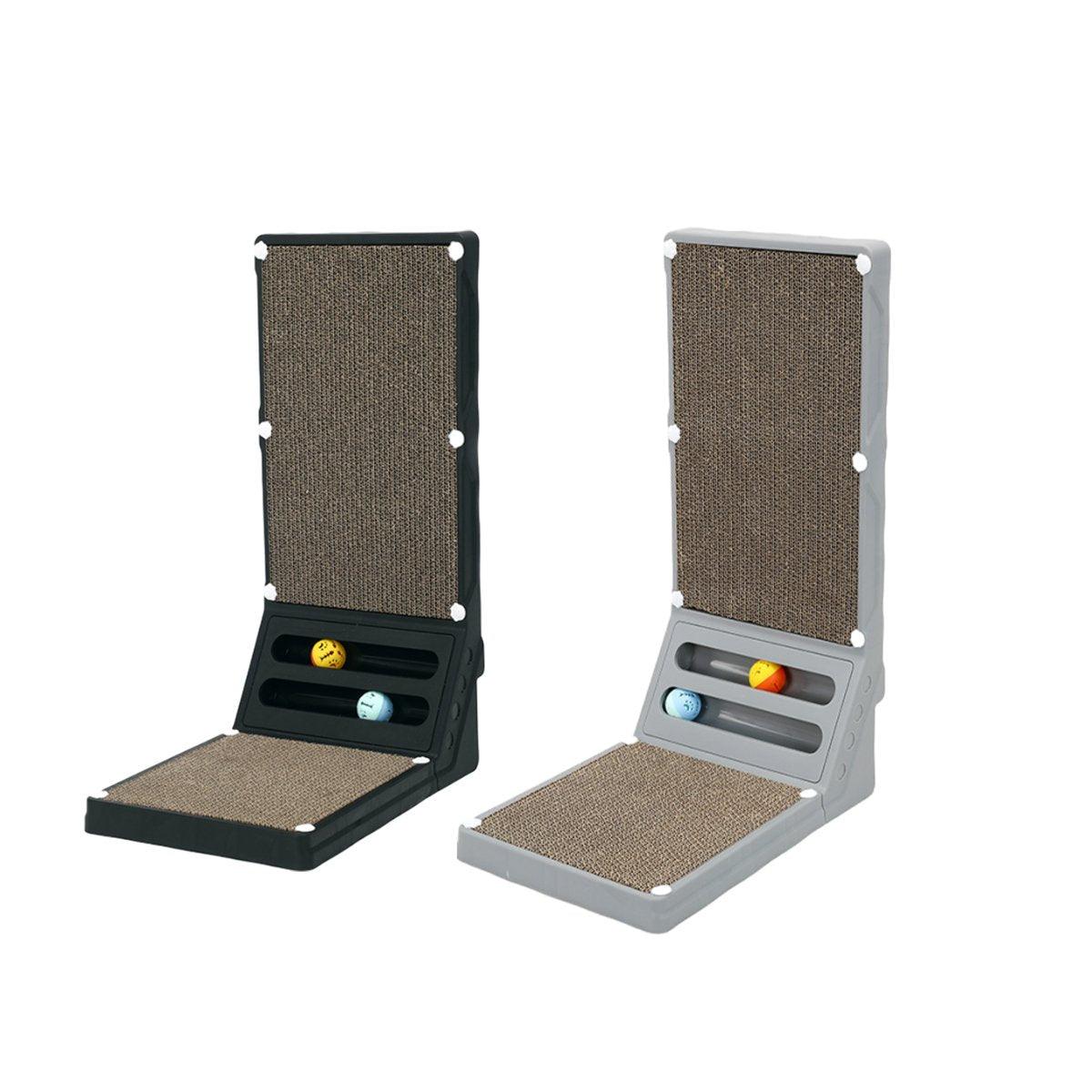 This L-shaped cat scratching board provides your cat with a safe and fun way to scratch, while keeping your furniture protected. Made with durable, high-density corrugated paper, it satisfies your cat’s natural scratching instinct and ensures long-lasting use. The board features a dual ball track system for added entertainment, and the sealed base contains paper scraps for a cleaner environment. Designed for easy installation with a snap-fastening system, this multifunctional scratch board also doubles as a comfortable resting spot for your cat.
