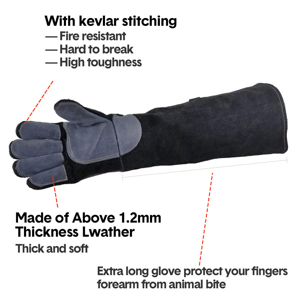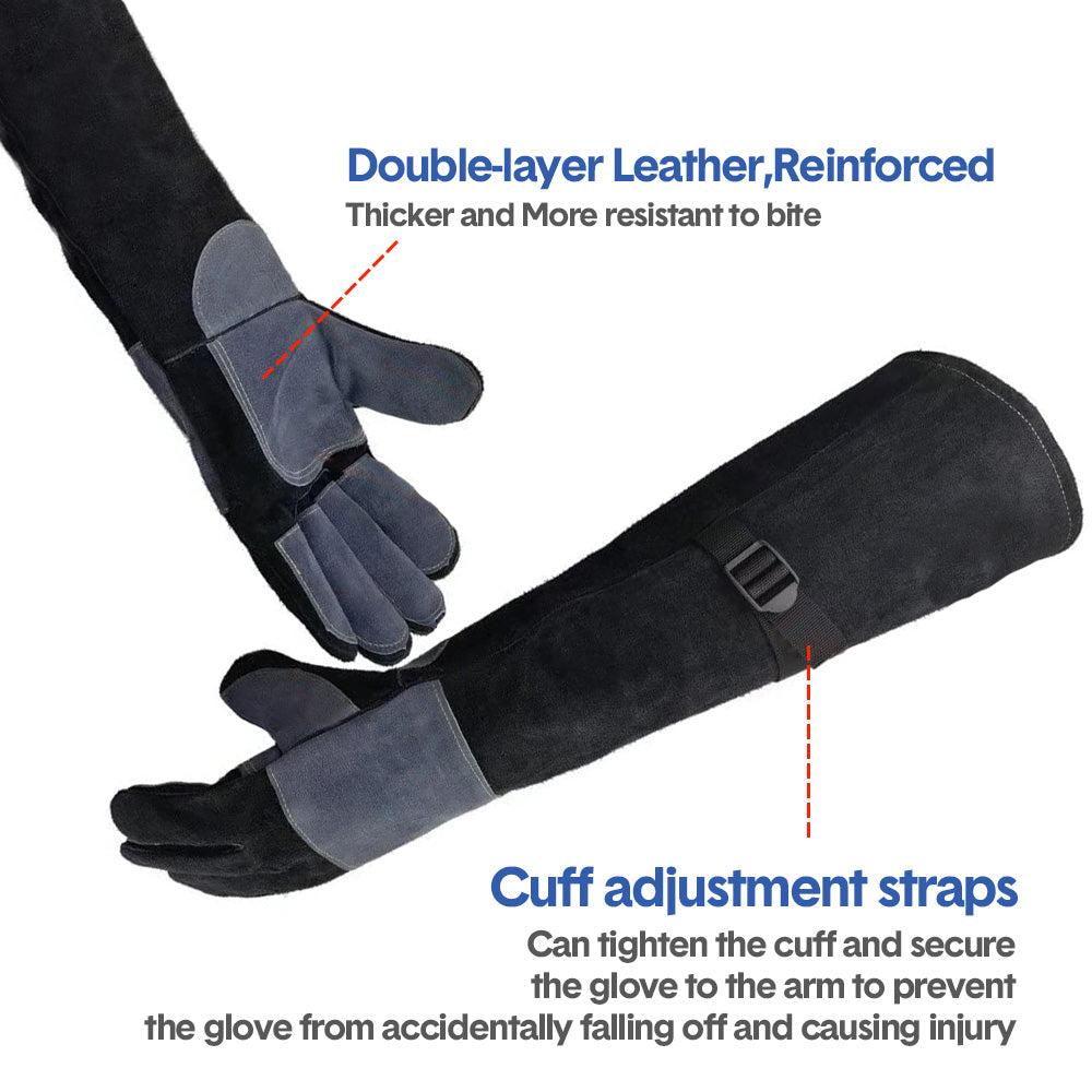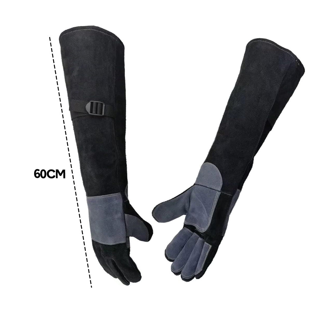 Crafted from durable leather with reinforced stitching, the 60cm long gloves provide extensive coverage and enhanced protection. Perfect for handling a wide range of animals and suitable for tasks like welding, gardening, and more, these gloves are a versatile and essential tool for any challenging environment.