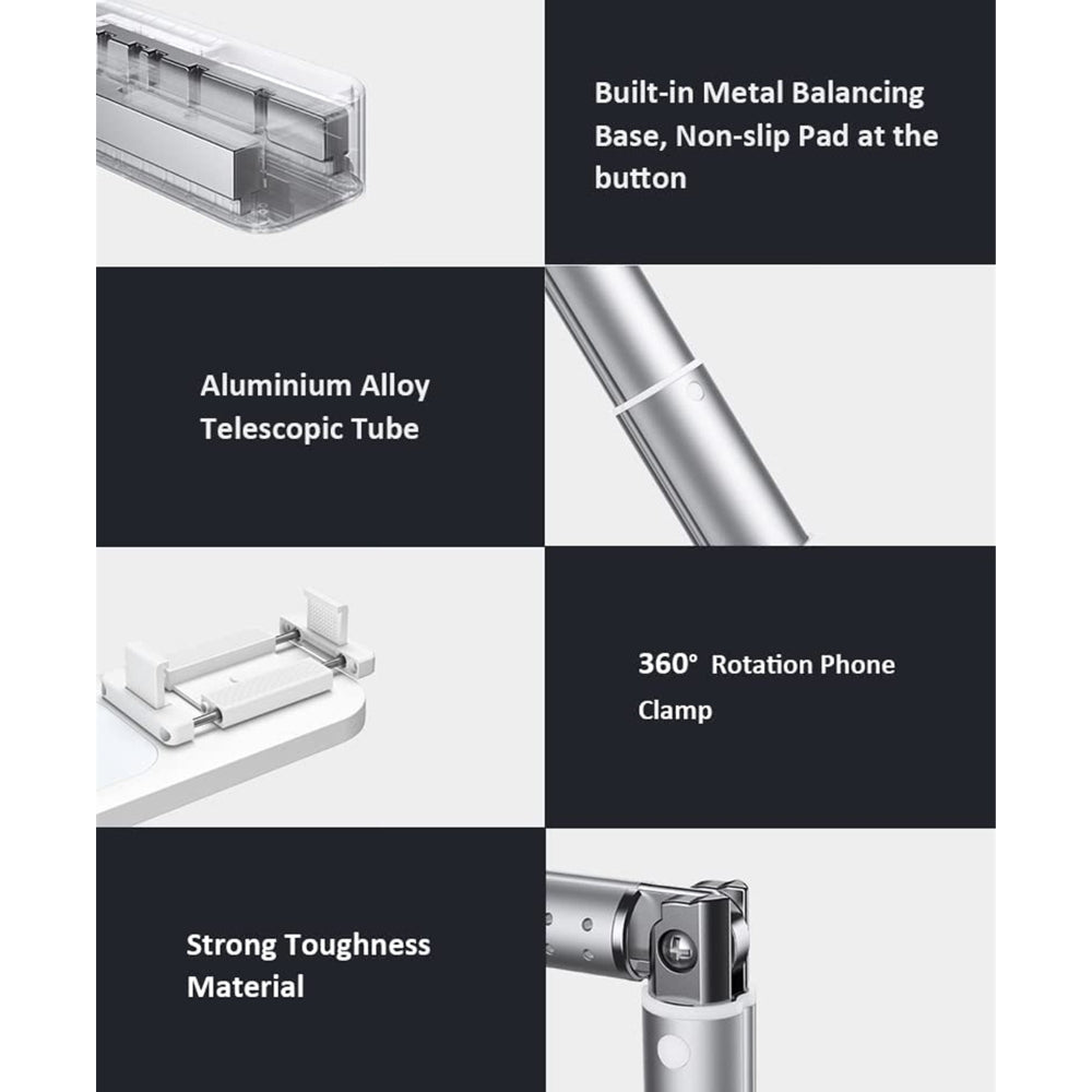 -Built-in 1000mAh Battery: This stand is a rechargeable, built-in 1000mAh high-capacity battery, that can work for 3-12 hours after charging. You can carry and keep it anywhere, perfect for outdoor live streams.