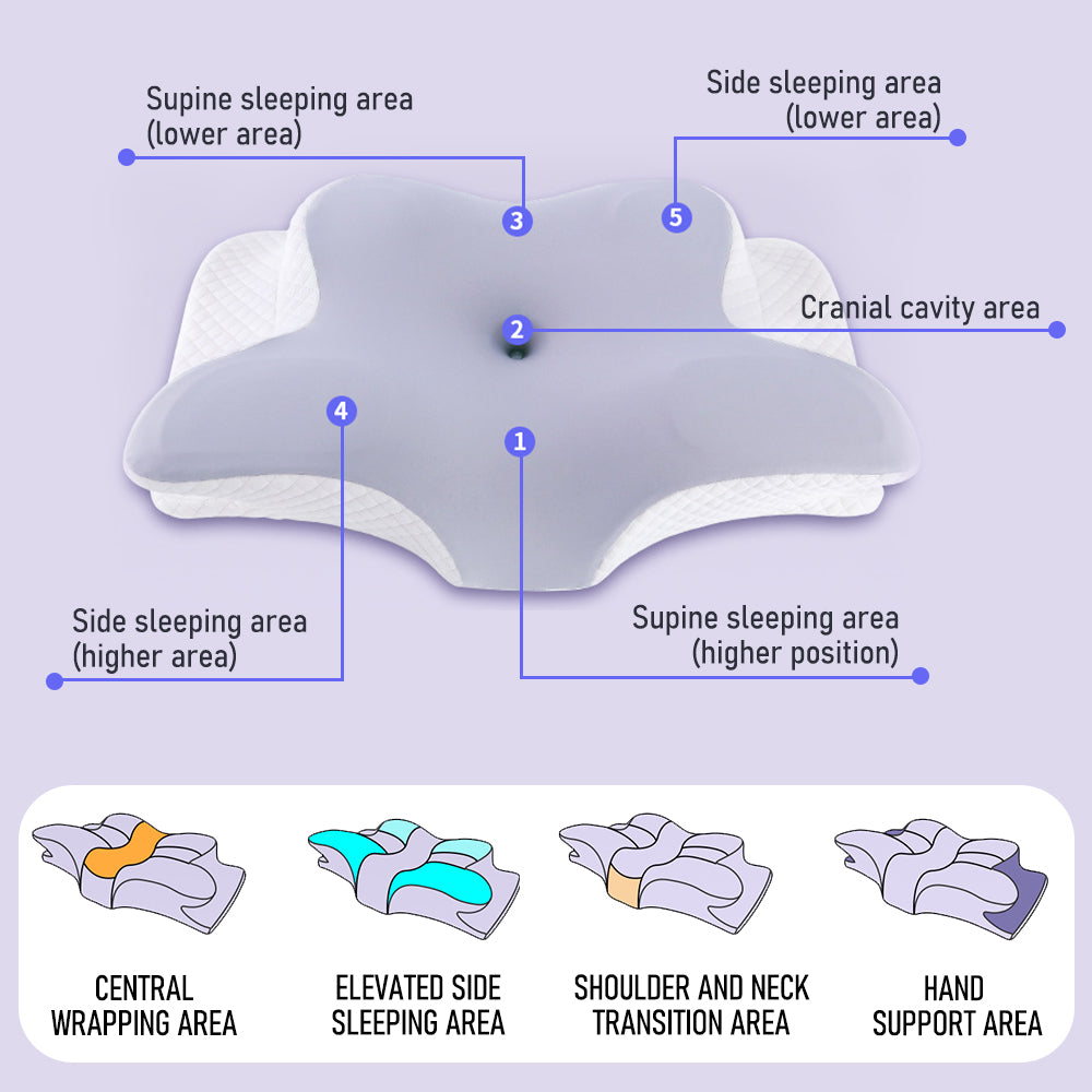 Crafted with a ergonomic contour design, this pillow follows your body's natural curve. Tailored to alleviate neck and shoulder pain, particularly for those with cervical spondylosis, it offers relief from sleep-related discomfort and fatigue. With a washable pillowcase, prolonging the lifespan of your pillow.