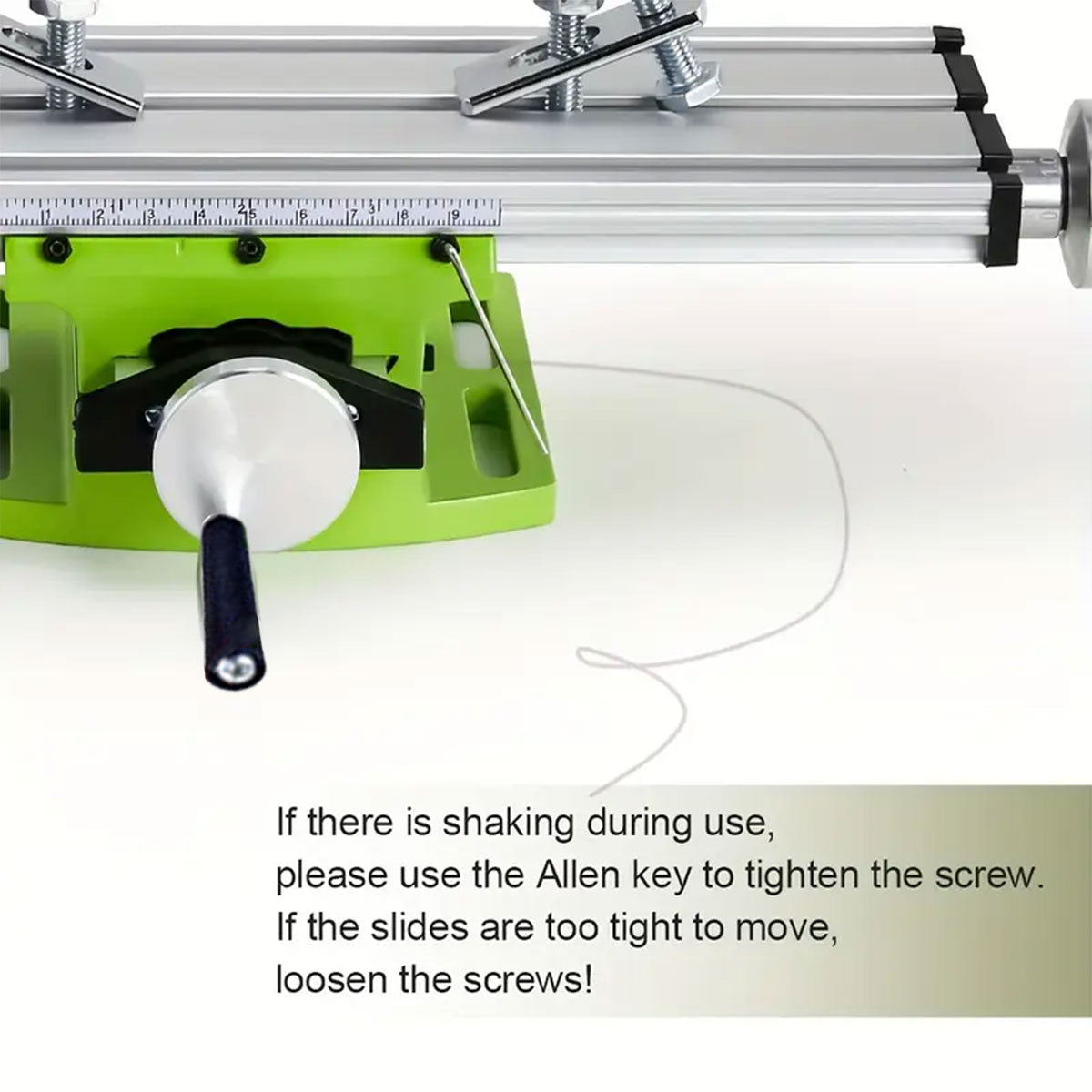 This multifunctional micro worktable machine tool table is essential for workshops, designed for drilling and milling machines. It allows precise X and Y axis adjustments, with durable aluminum alloy construction ensuring strength and stability. Adjustable scale handles enable accurate movement control, ideal for enhancing precision in DIY or professional machining tasks.