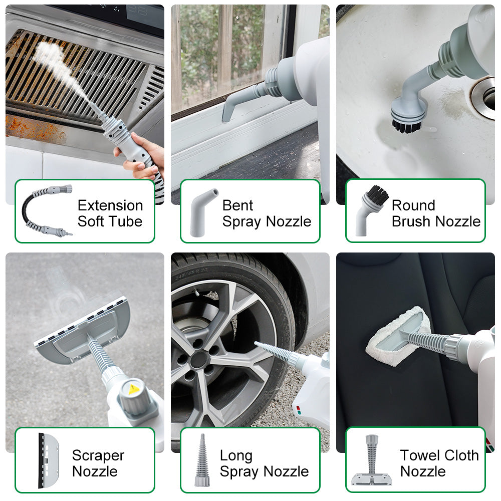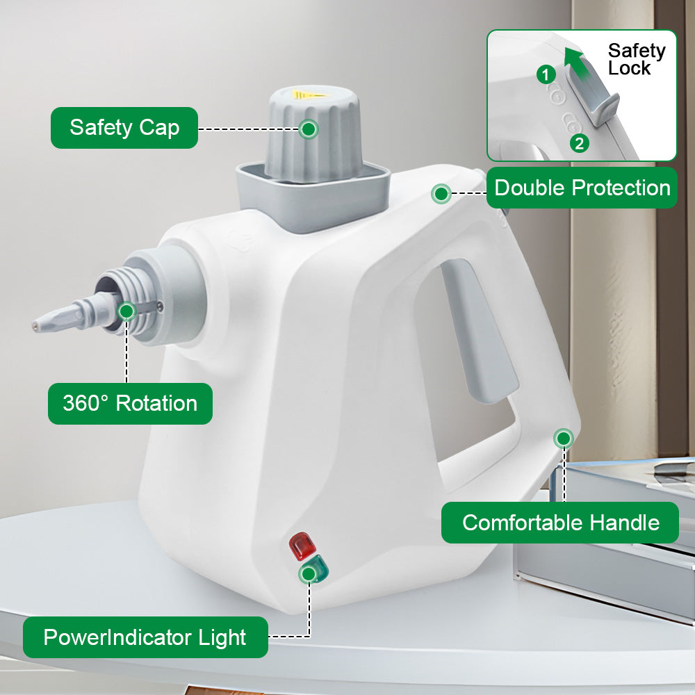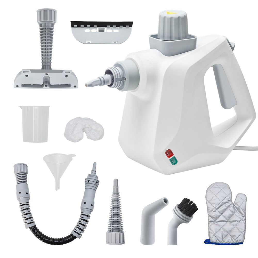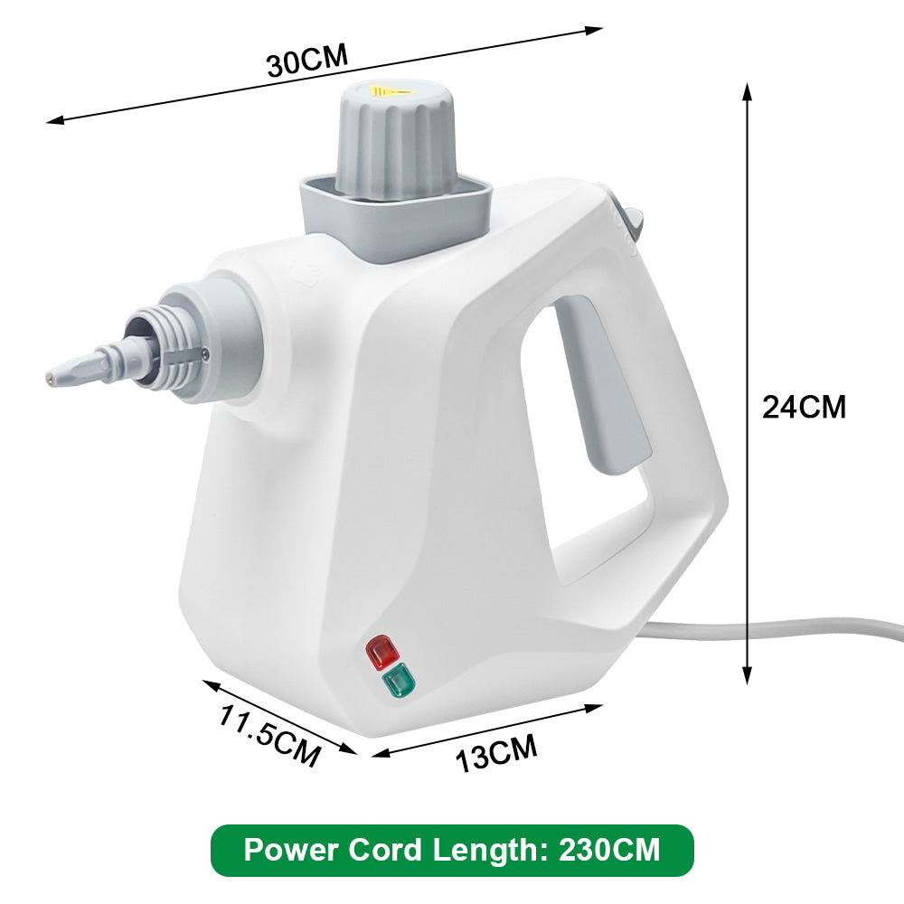 This 1050W steam cleaner delivers strong cleaning power to remove stubborn dirt and grime effectively. With preheat 2-3 minutes, it comes with a 350ml water tank (recommended 250ml) for continuous steam. Its compact design allows for easy control. The complete set includes various accessories for all your cleaning needs.