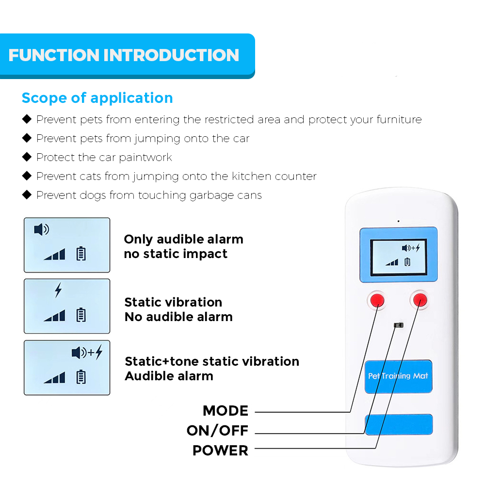 This Pet Training Mat offers a revolutionary solution for effectively managing pet behavior indoors. This innovative mat utilizes a combination of sound and static correction to deter pets from entering restricted areas. It caters to the needs of pets of all sizes with gentle yet effective deterrents.