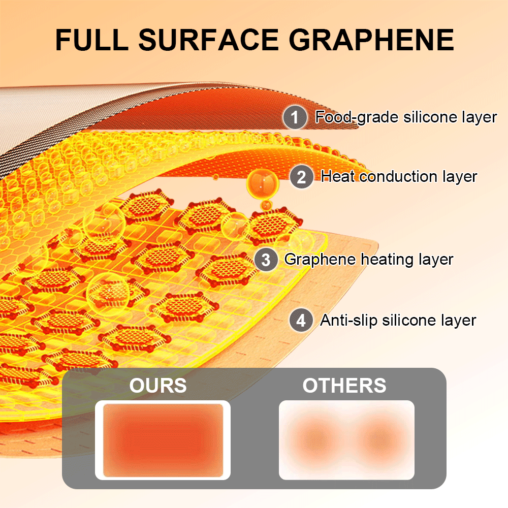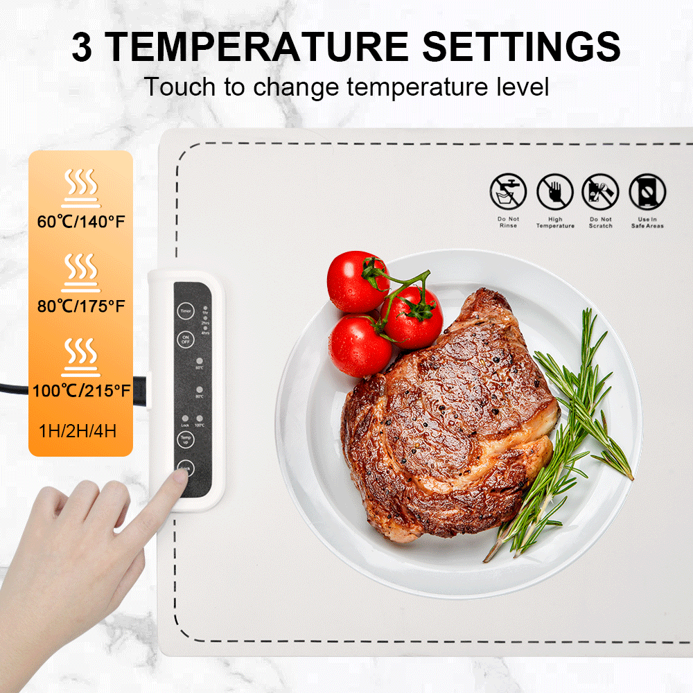 Enjoy perfectly warm meals with this portable silicone electric warming tray. Its advanced graphene heating ensures even heat distribution, making it ideal for home kitchens, buffets, and gatherings. With 3 temperature settings and a timer function, the warming pad guarantees precise heat control for a elevated dining experience.