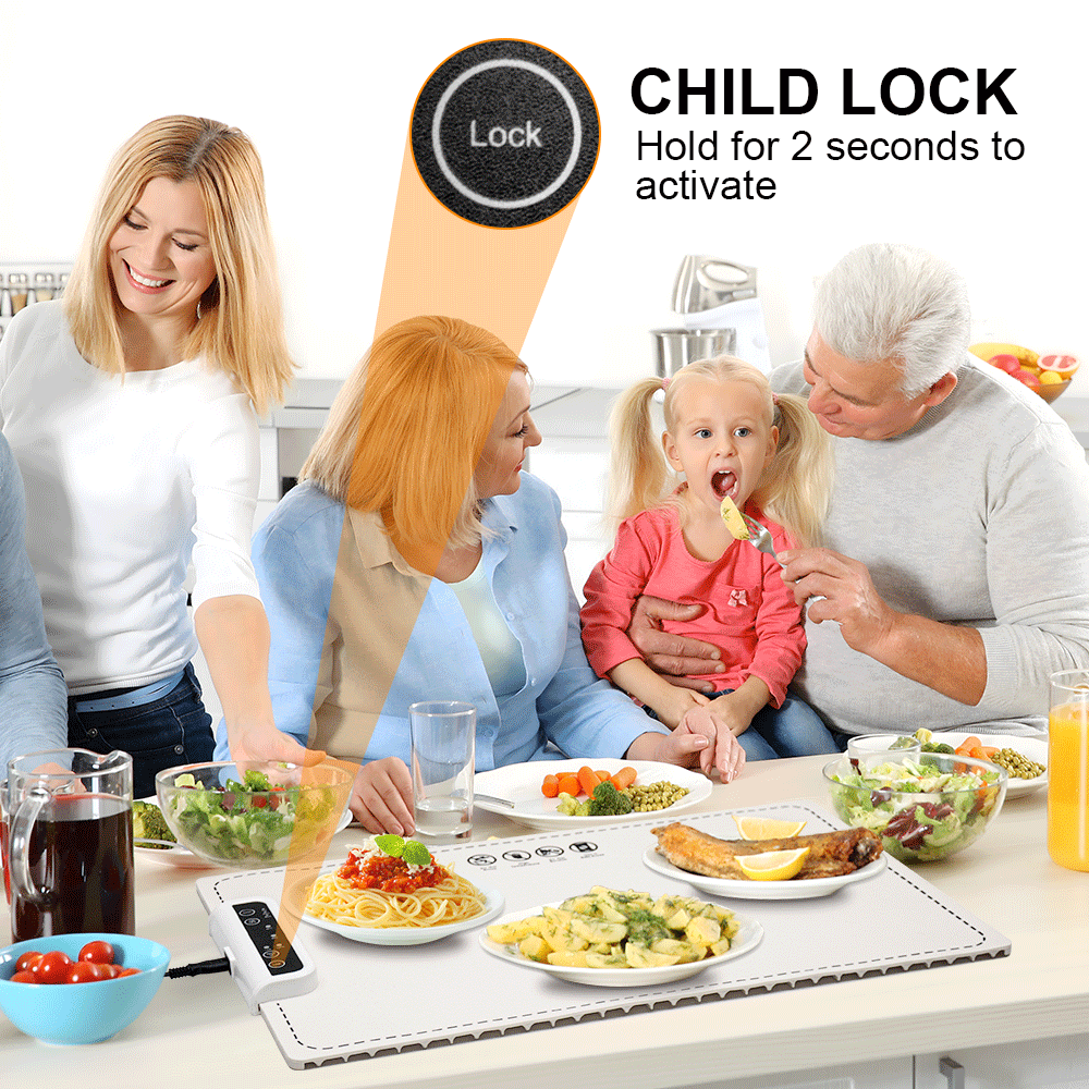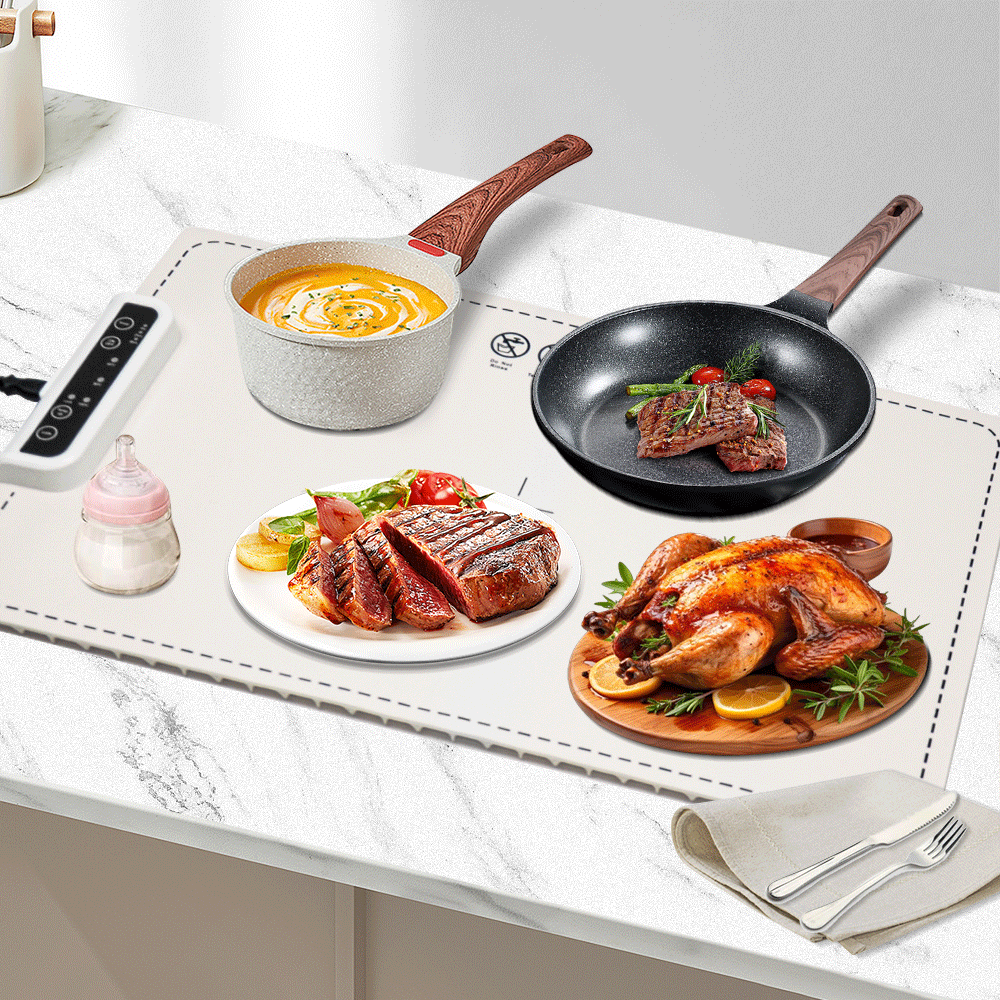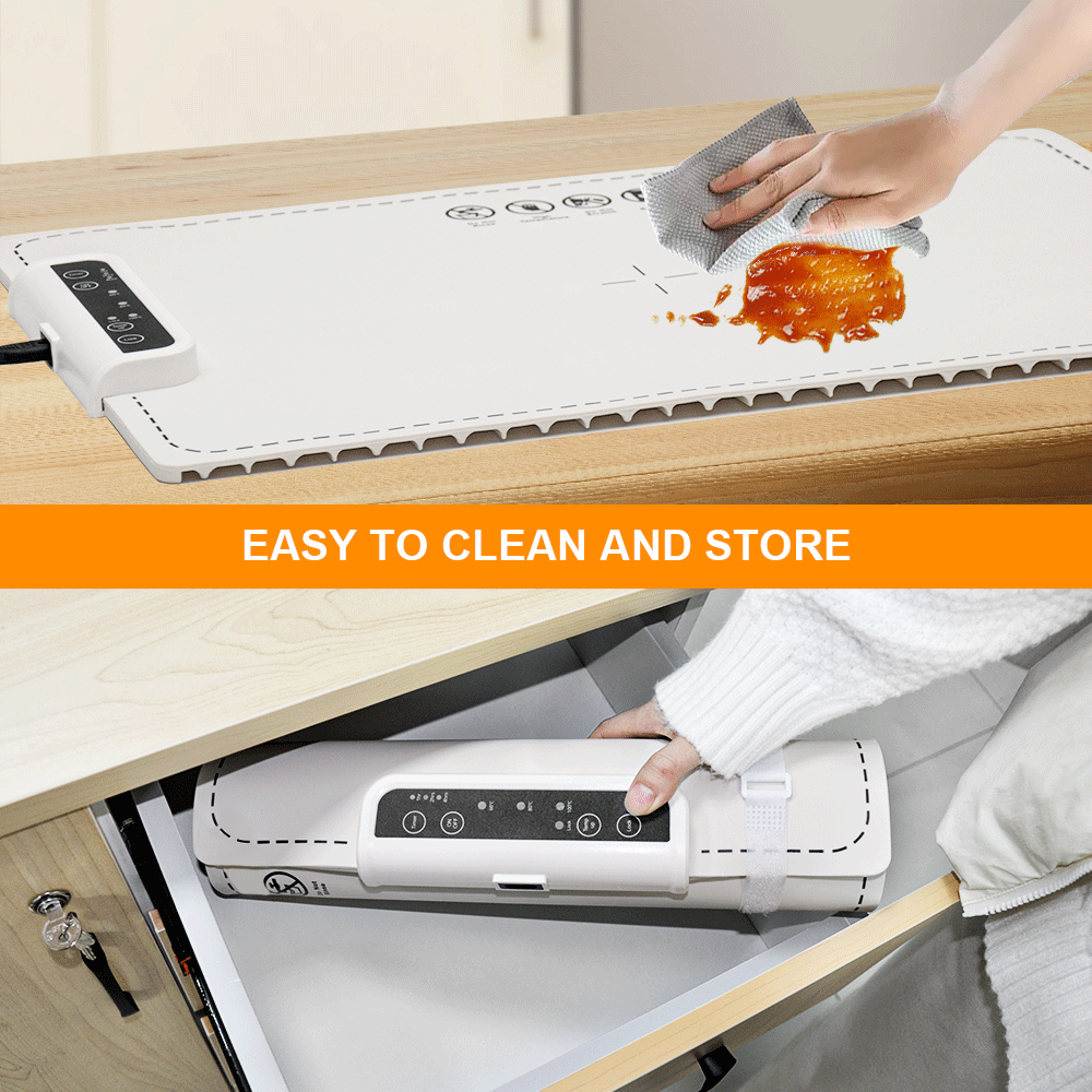 With a food-grade silicone surface and graphene heating layer, this tray offers efficient, full-surface heating. The child safety lock prevents accidental adjustments, while its rollable design allows for easy storage and transport. Beyond keeping dishes warm, it can also aid in dough fermentation and food thawing, making it a versatile addition to any kitchen or catering setup.