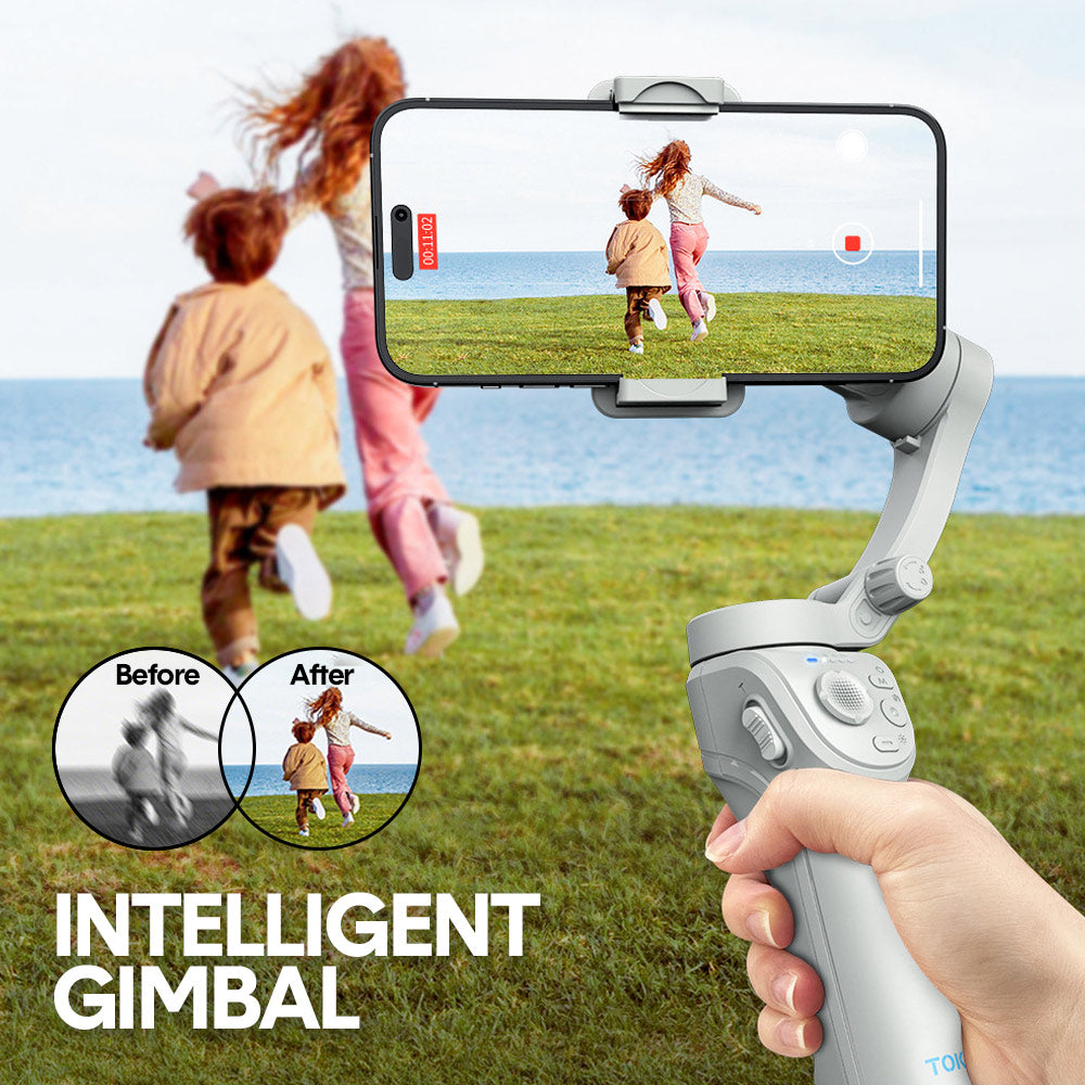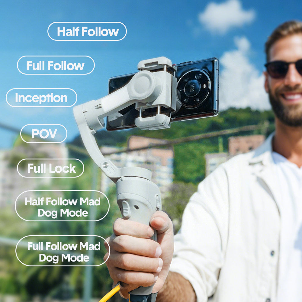 With advanced three-axis stabilization, this Intelligent Gimbal provides exceptional stability and smoothness for capturing professional-grade videos and photos. Its compact, foldable design and long-lasting rechargeable battery makes it easy to carry and ideal for outdoor adventures, travel, or spontaneous shoots.