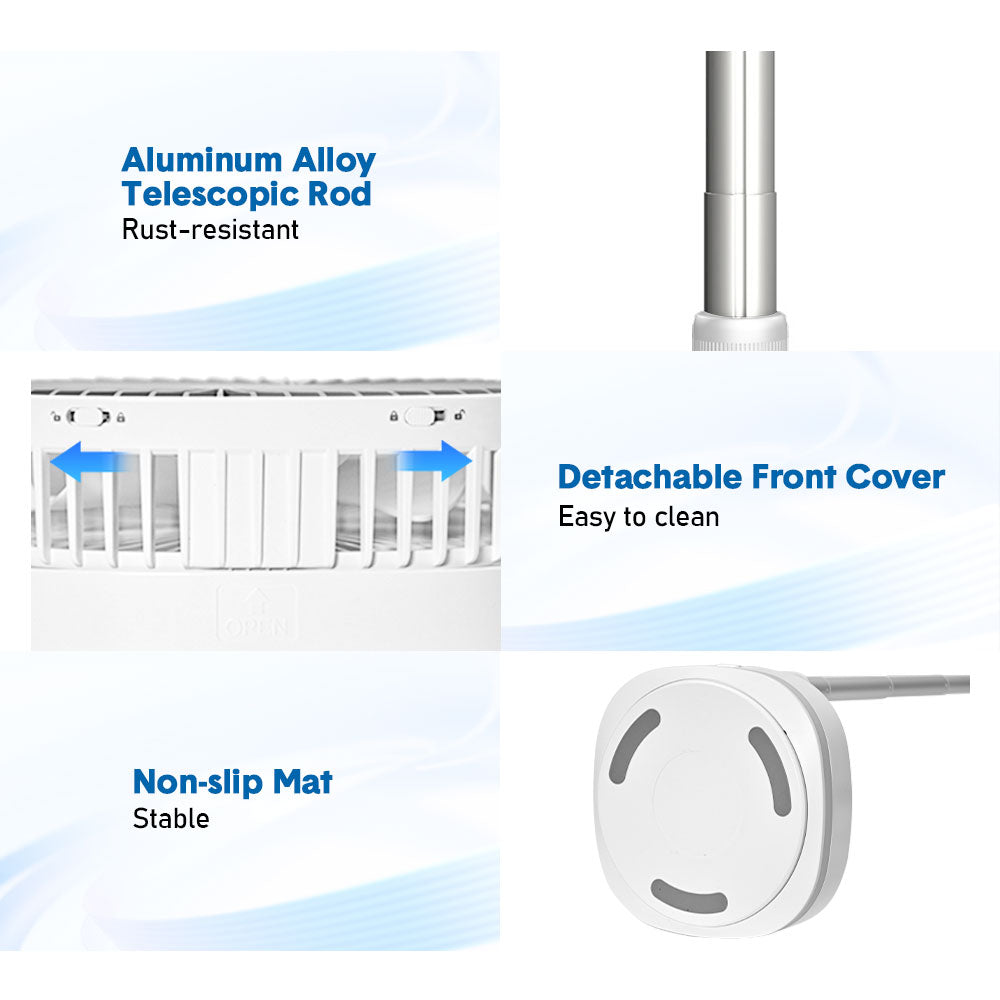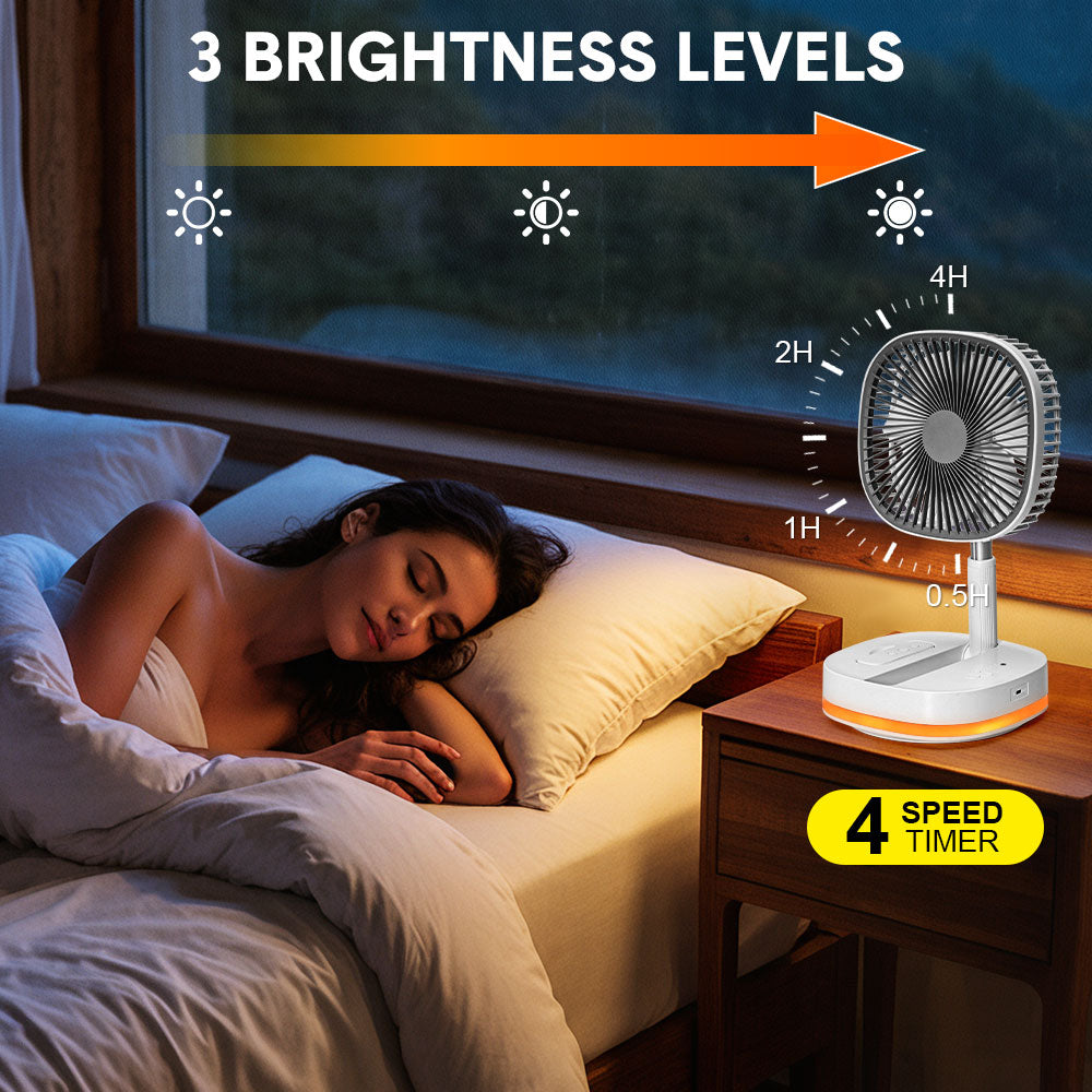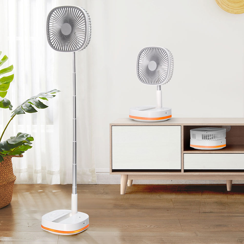 Enjoy cool and refreshing airflow anywhere with this rechargeable telescopic fan. With adjustable height, our fan serves effortlessly as both a desk fan and a floor fan. Quiet operation and wide oscillation ensure the right breeze for every corner. It offers reliable comfort whether you're working indoors, relaxing in the bedroom, or camping outdoors.