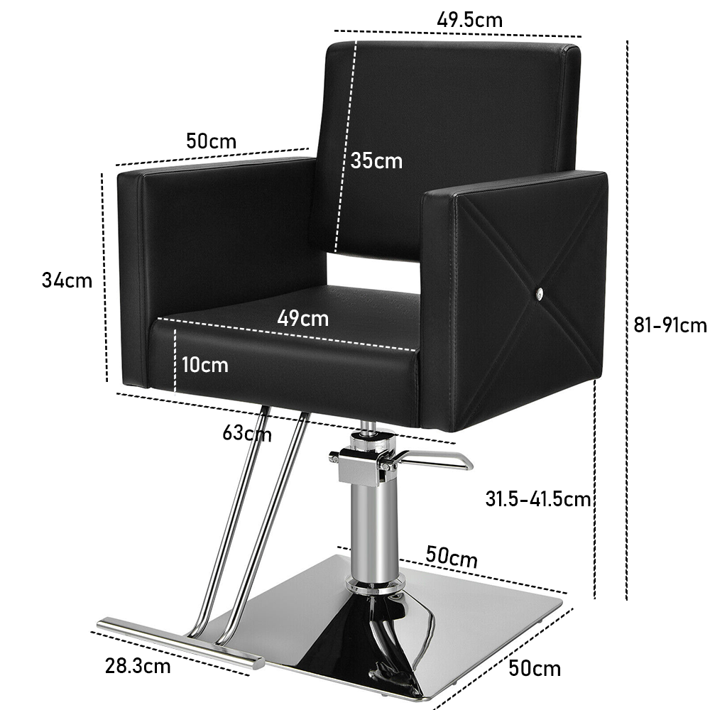 Introducing our Cushioned Hair Styling Chair, the perfect addition to enhance your hairdressing and makeup services.Designed for great comfort, this salon chair features an adjustable headrest,backrest, wide seat, comfortable armrest and pedal, providing support for entire body.Ideal for hair design,tattoo,and salons.