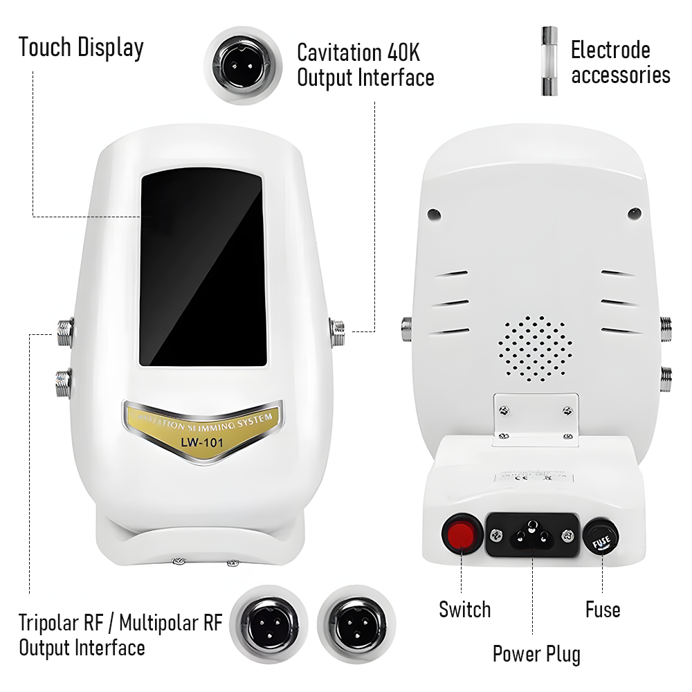 The 3-IN-1 Cavitation Machine offers a solution for skin lifting and body shaping.With 40KHZ burst fat head and 4 polar head,the waves efficiently breaks down fat cells to reshaping your body,while the 3 Pole head for face firms and rejuvenates the skin by stimulating collagen production.Ideal for treatment at home.