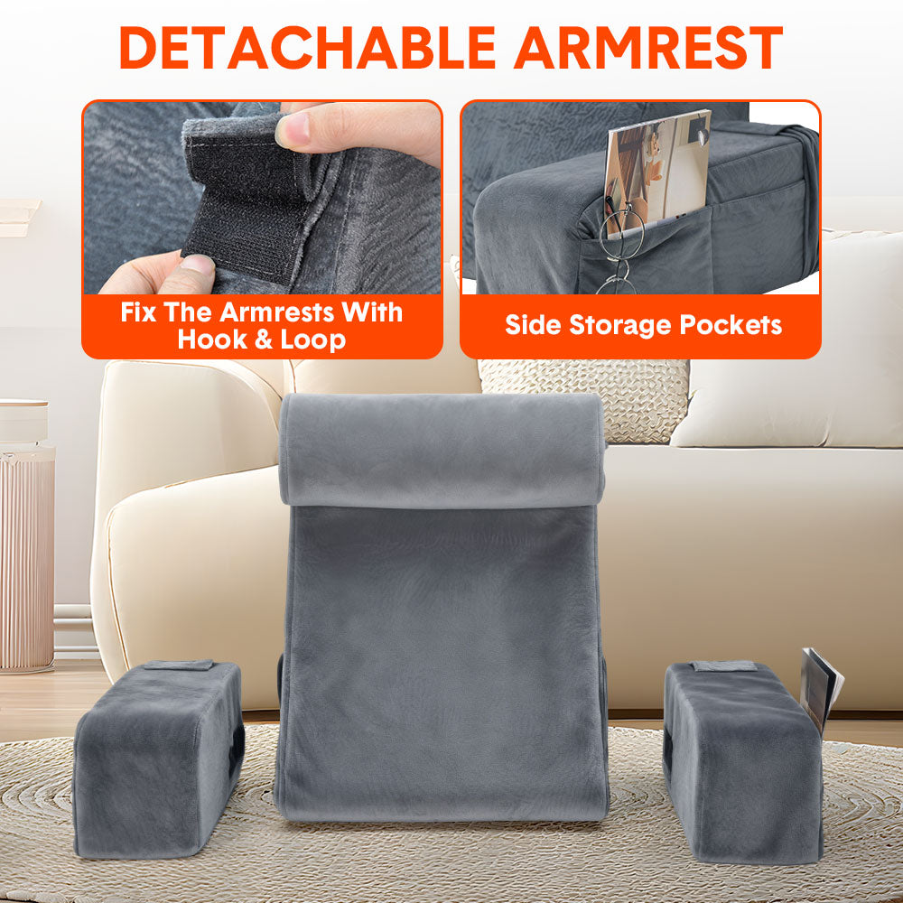 This ergonomic reading pillow set brings you both comfort and healthy posture while you are reading, watching TV, or relaxing in bed, couch or even on the floor. The high-density memory foam gently contours to your body, providing cozy support. With its detachable armrests and adjustable headrest, you can easily find your ideal sitting position.