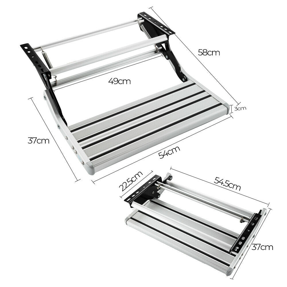 Upgrade your caravan experience with our Pull-Out Caravan Step, designed for strength, durability, and convenience. Made from premium-grade aluminum, this step offers a solid and stable platform with a 200kg capacity, making it ideal for all conditions. The anti-slip design ensures safety, while its lightweight construction allows for effortless operation. Built to resist corrosion, this step is perfect for long-term use and is an essential addition to your caravan setup.