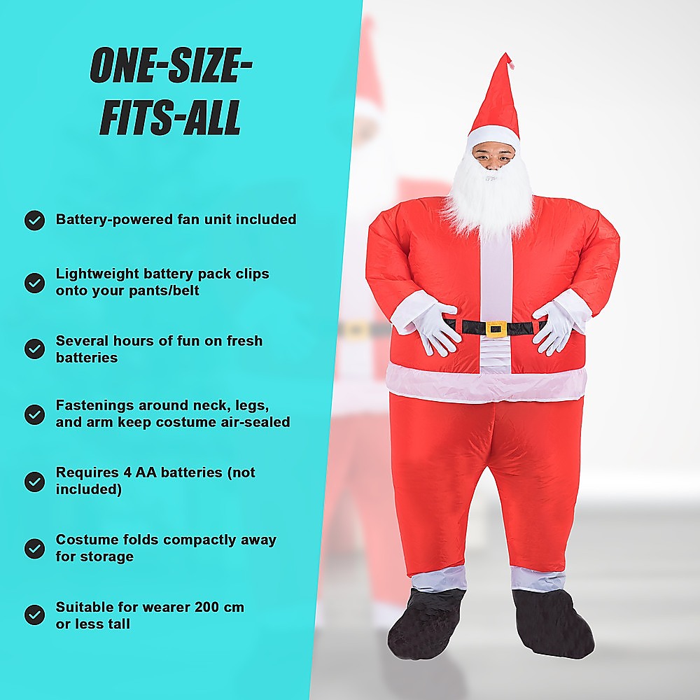 Be the life of the party and entertain your friends with this brilliant inflatable costume. Powered by a small integrated fan (included) the suit quickly inflates to full size in a matter of moments. One size fits all.