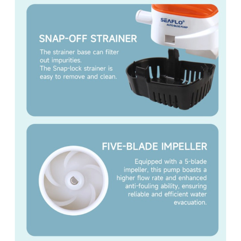 Upgrade your boat’s bilge system with the SEAFLO 1100 GPH Automatic Bilge Pump. Designed with an all-in-one pump and switch, this rugged ABS-constructed unit automatically activates when water levels rise and shuts off when levels drop.