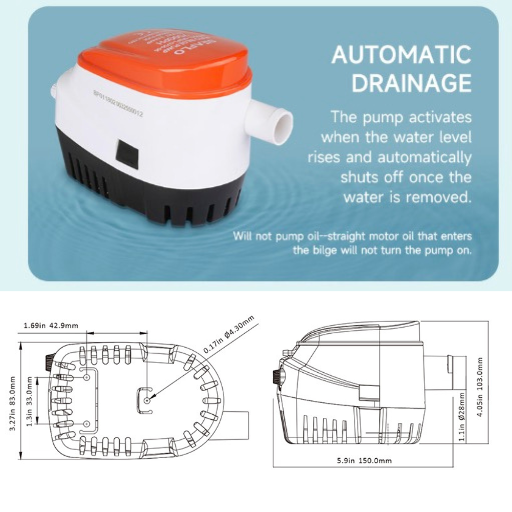 Its compact size, high efficiency, and low current draw make it a dependable choice for keeping your vessel dry. This kit also includes a premium kink-free PVC hose, stainless steel hose clamps, and a 1-inch thru-hull fitting for a professional and secure installation.