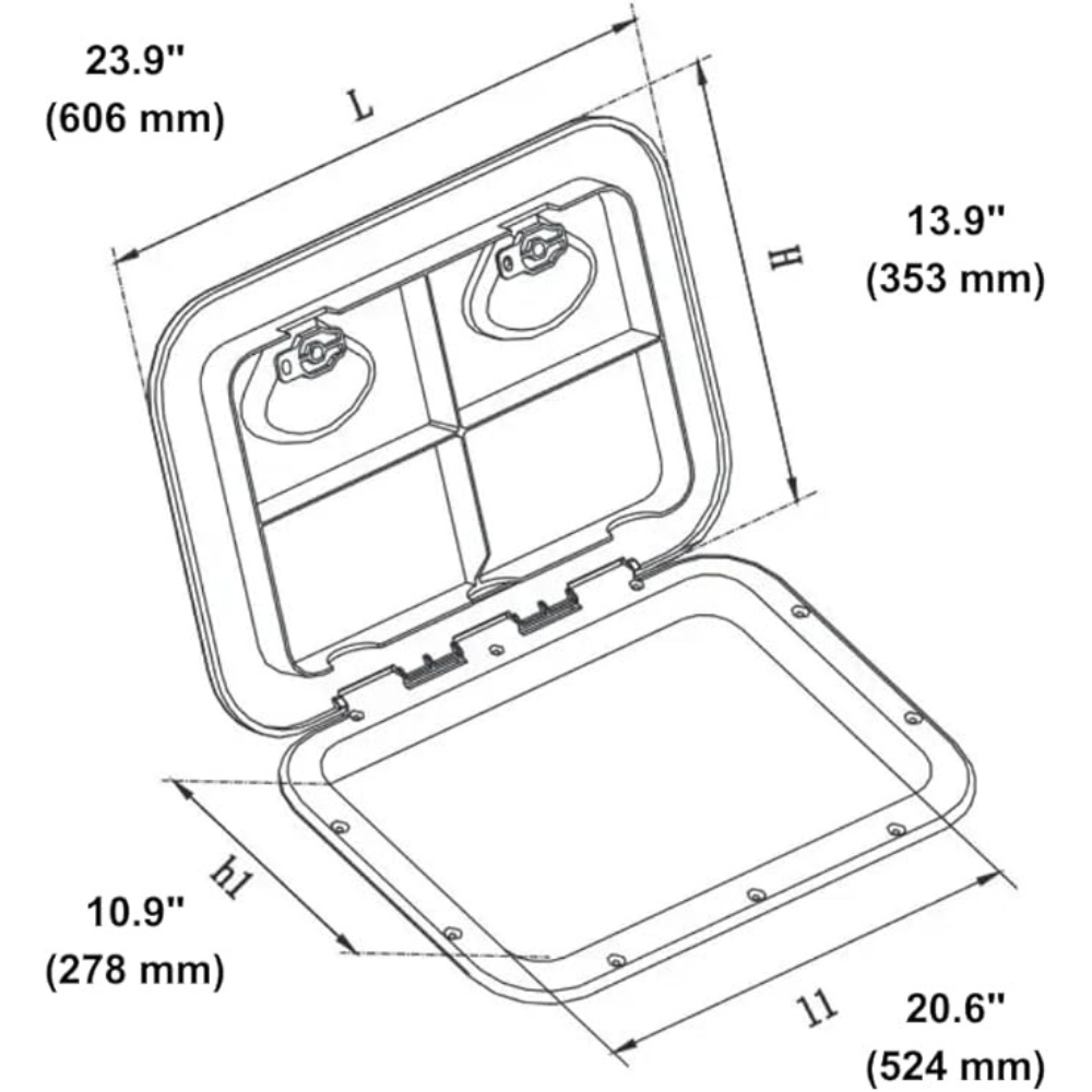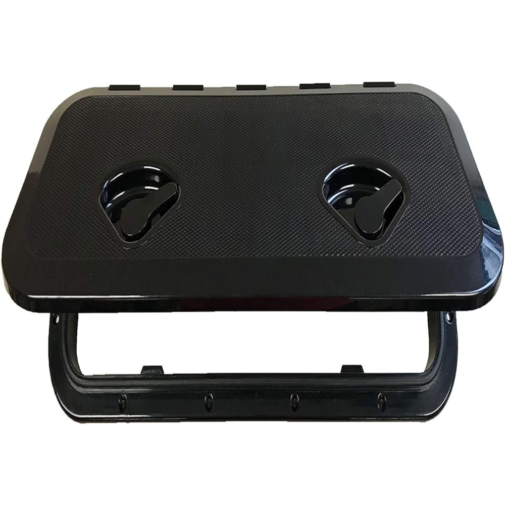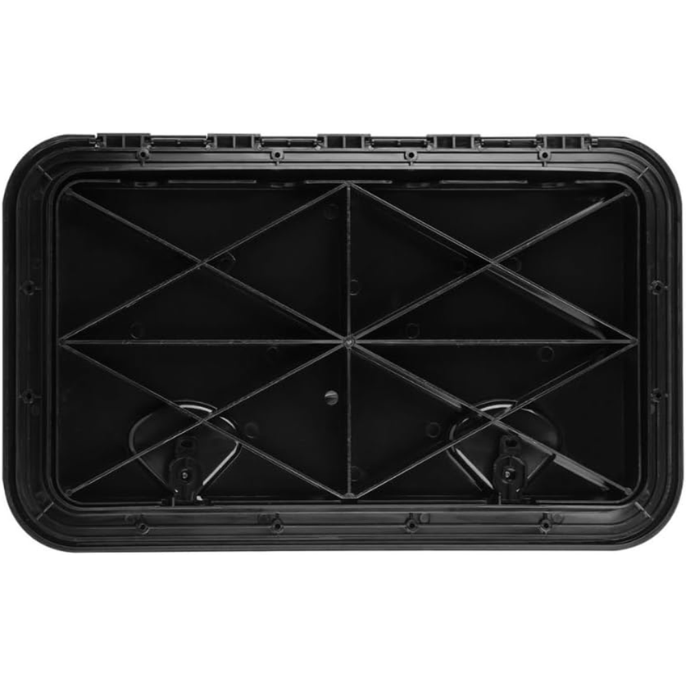 The SEAFLO Marine Deck Access Hatch & Lid (24″ x 14″) in sleek black is designed with a heavy-duty, UV-resistant ABS thermoplastic construction for maximum durability. Its reinforced lid hinges 180° and completely covers the mounting flange, creating a flush, low-profile finish. A reliable rubber seal ensures weatherproofing when mounted vertically, and two recessed handles make opening and closing effortless.