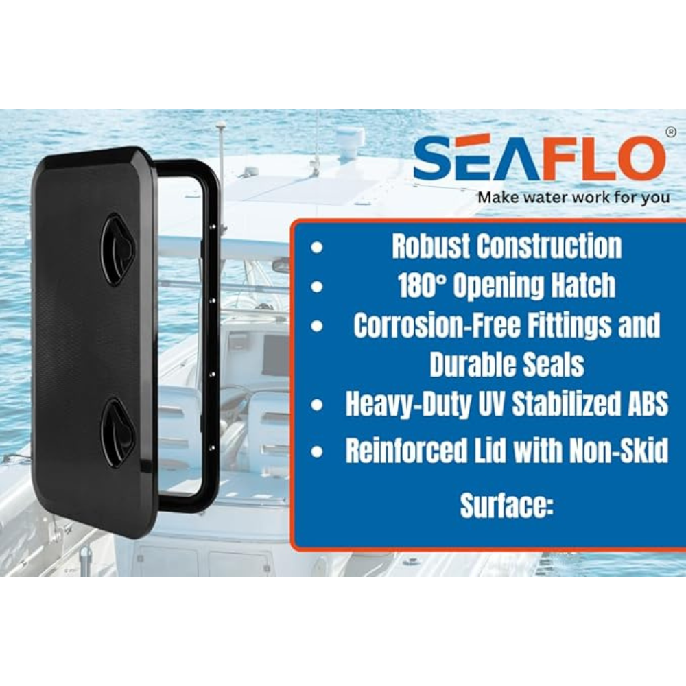 This hatch is easy to install, featuring pre-drilled countersunk fastening holes (screws not included), and offers a non-skid surface for added safety. Perfect for internal or external flat surfaces, the SEAFLO Access Hatch stands out for its longevity and performance, making it a top choice for marine applications.