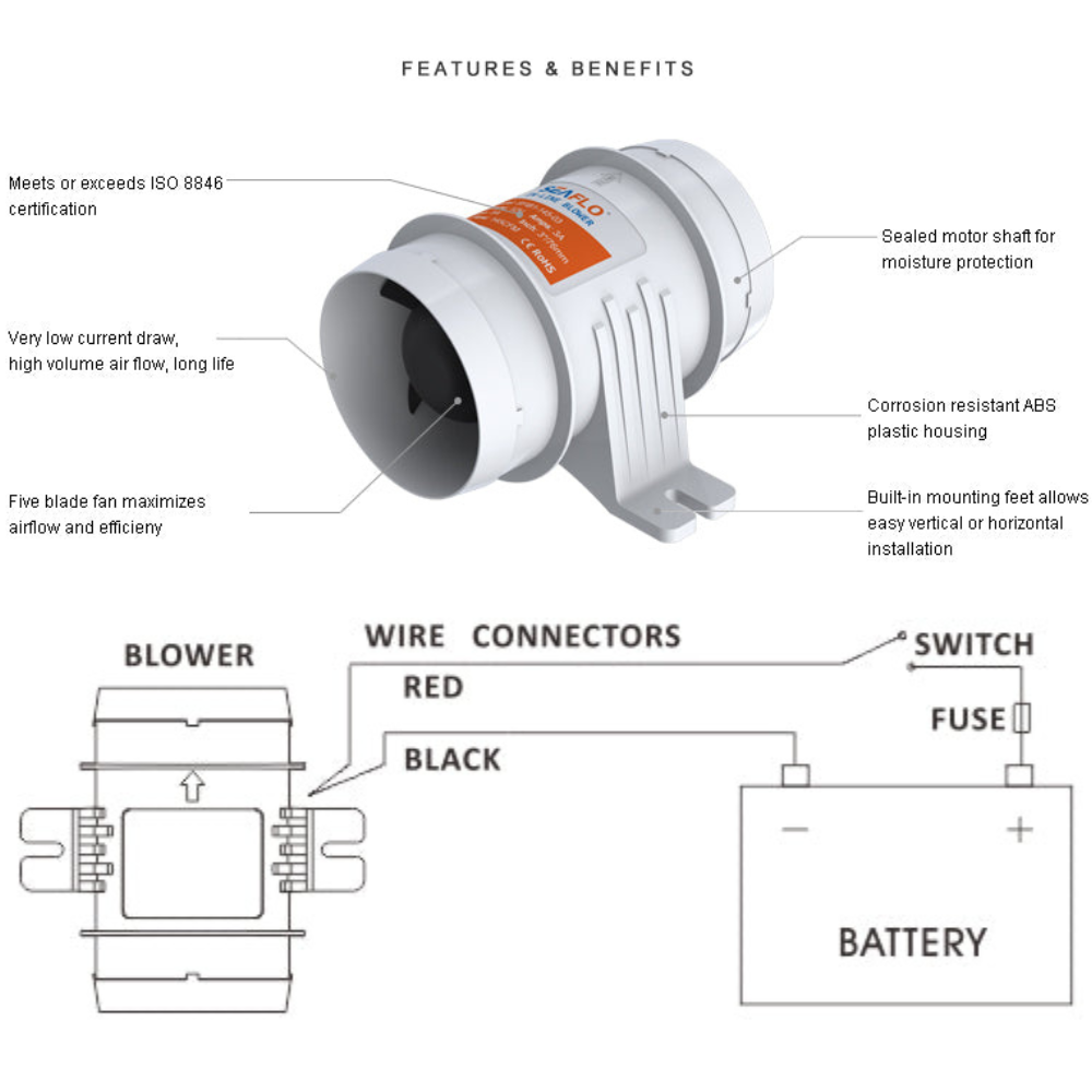 This compact blower offers higher air flow, lower amp draw, and quieter operation than traditional blowers, making it ideal for tight spaces and easy to install on any flat surface.