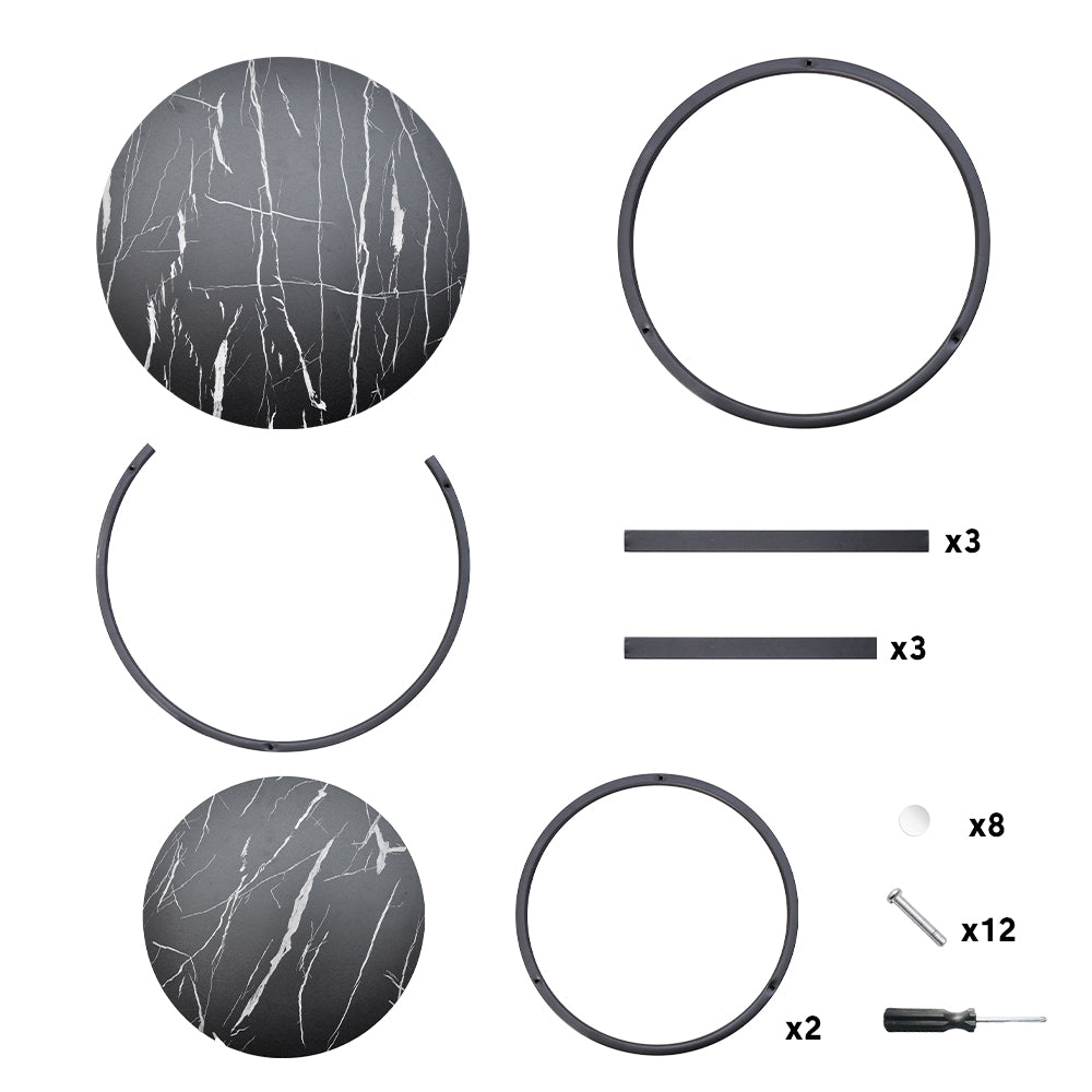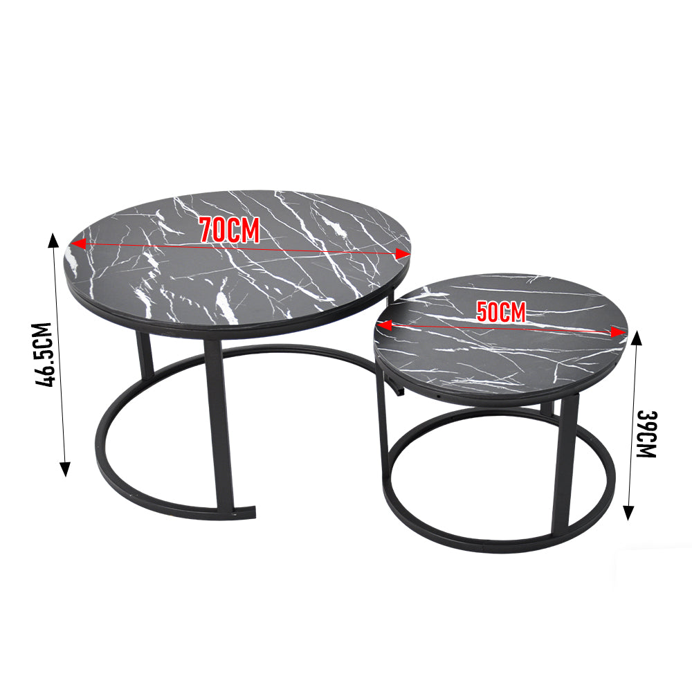 This set includes two generously tabletops, measuring 70cm and 50cm in diameter, with a scratch-resistant marble-like finish, offering enough space for your items. Built with thick metal frames and MDF boards, it offers exceptional stability and supports up to 300kg. Easy to assemble with clearly labelled parts and detailed instructions.