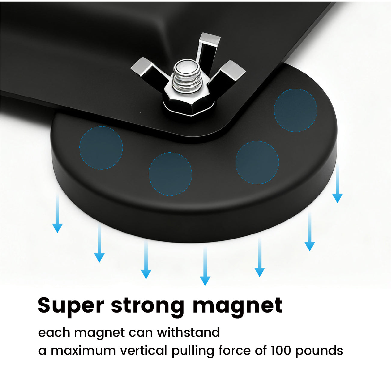 Built with reinforced galvanized steel, durable ABS, this mount withstands rain, heat, wind, and sun, ensuring long-lasting performance outdoors, providing a safe mounting option in challenging conditions. Each of the four strong magnets delivering 15kg pull force. Tool-free installation makes it easy to set up and detach.