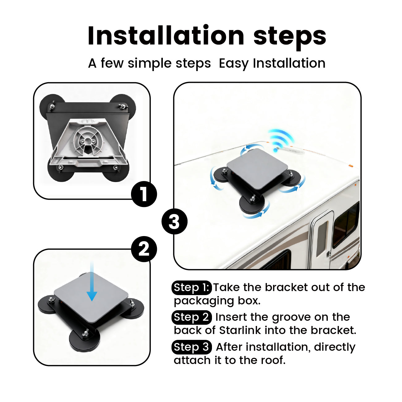 This magnetic mounting bracket offers a snug fit for securing your Starlink Mini on your car roof or any flat iron surface during travel and outdoor uses. It includes four strong magnets delivering a total 60kg pull force for maximum grip and stability. Ideal for vehicles, camping, and on-the-go connectivity.