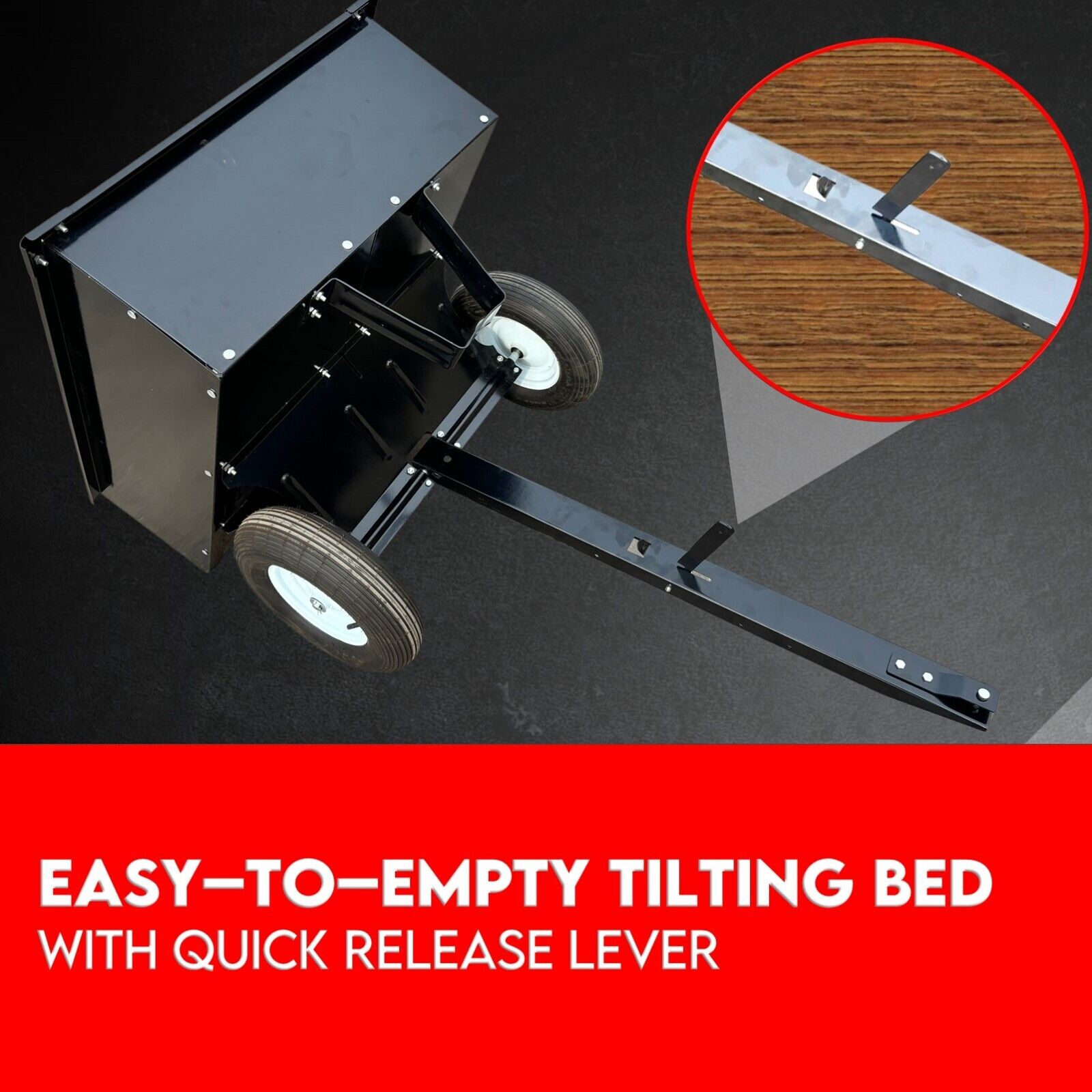 Using this cart is easier than ever, thanks to a universal hitch that easily adapts to any lawn tractor. The removable tailgate makes it easier to load and unload. The latch is spring loaded so simply return the bed to the upright position to secure it and you'll be on the move again in no time.