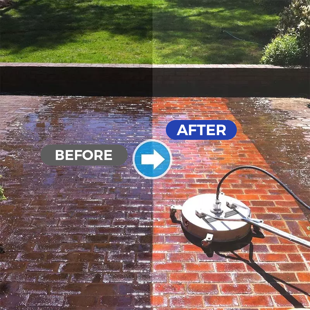 Introducing our 21'' High-Pressure Surface Cleaner,compatible with most 3200-4200PSI pressure washers.With two high-pressure rotating jets, tough flexible bristles and 4 universal castors it offers commercial-level cleaning and effectively removes dirt with great mobility.Ideal for various horizontal flat surfaces.
