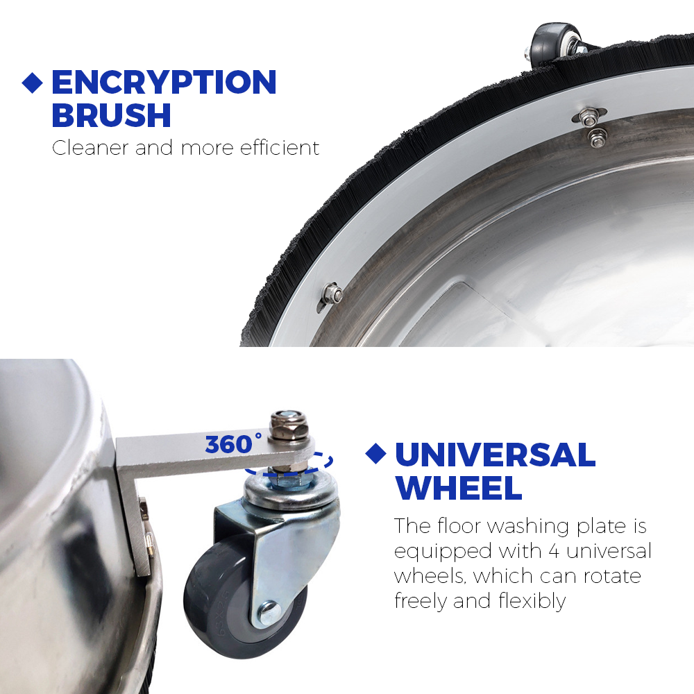 The high-pressure washer equipment connected to the surface cleaner shall not be less than 1000PSI. Higher pressure brings a cleaner washing effect. The nozzles are very small, which is particularly easy to block. As long as one is blocked, none of the nozzles will work.