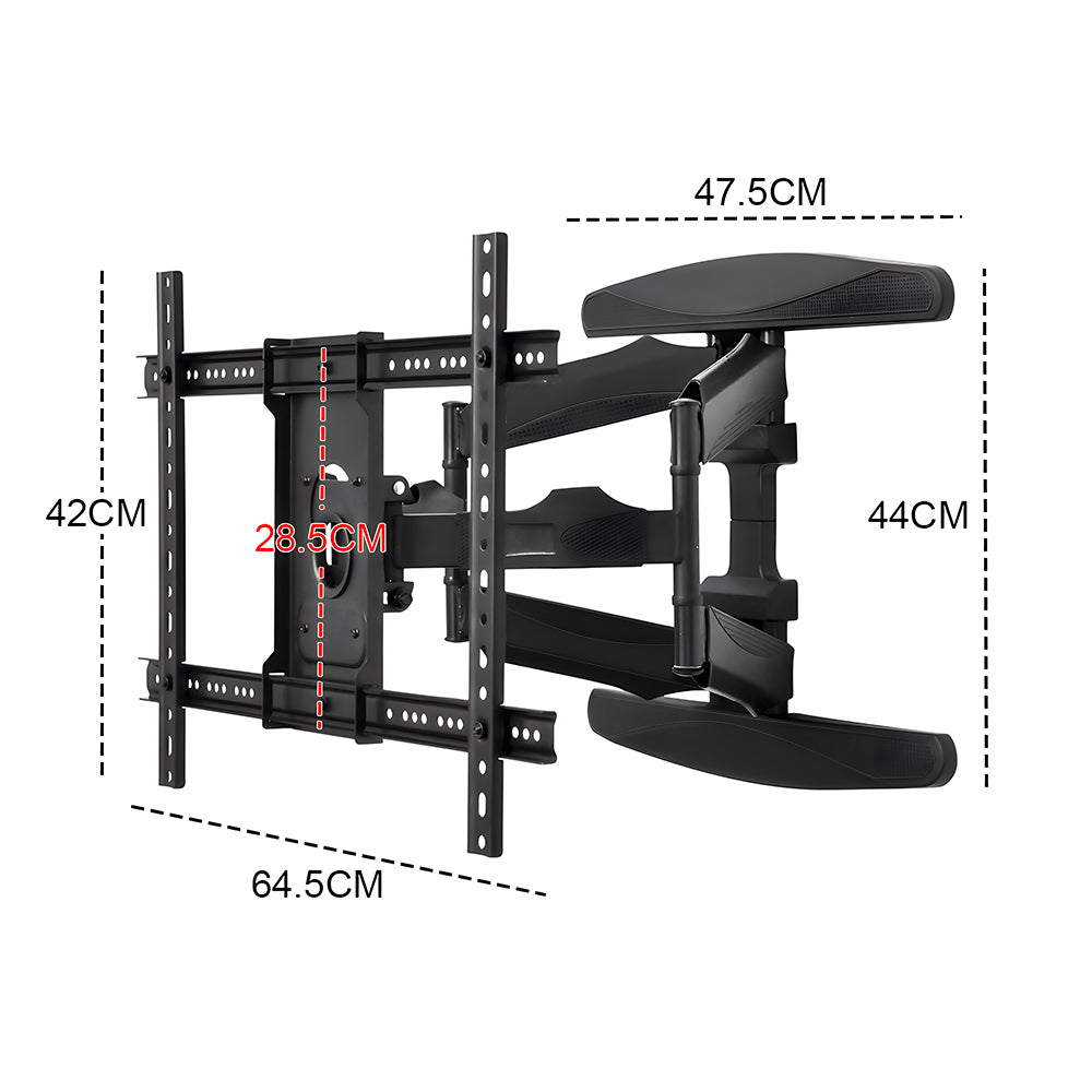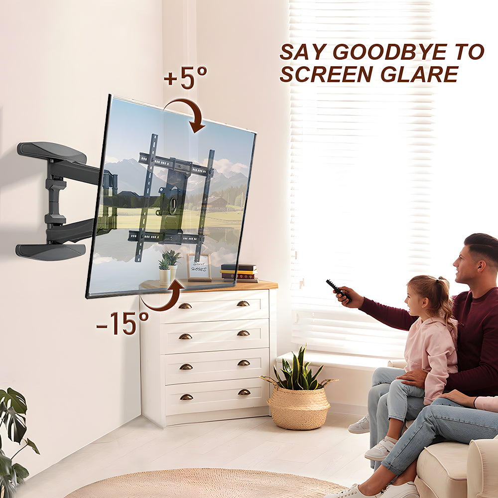 Built from premium cold-rolled steel, this durable TV wall mount holds up to 85 kg. Its full-motion design allows for a tilt range of -5° to +5°, swivel angles from -45° to +45°, and level adjustments of ±3°, reducing glare and ensuring optimal comfort. With an extendable arm reaching 48.5 cm, it accommodates various viewing preferences.