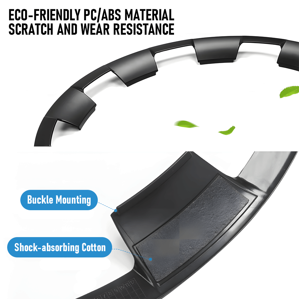 Introducing our Model Y Wheel Covers, precision-engineered for Tesla Model Y's 20-inch wheels. Stylish color-blocking design protects against scratches, crafted from durable ABS and PC materials with a piano paint finish for a sleek look. The matte black finish complements your vehicle's design, easy installation with a snap-on design.