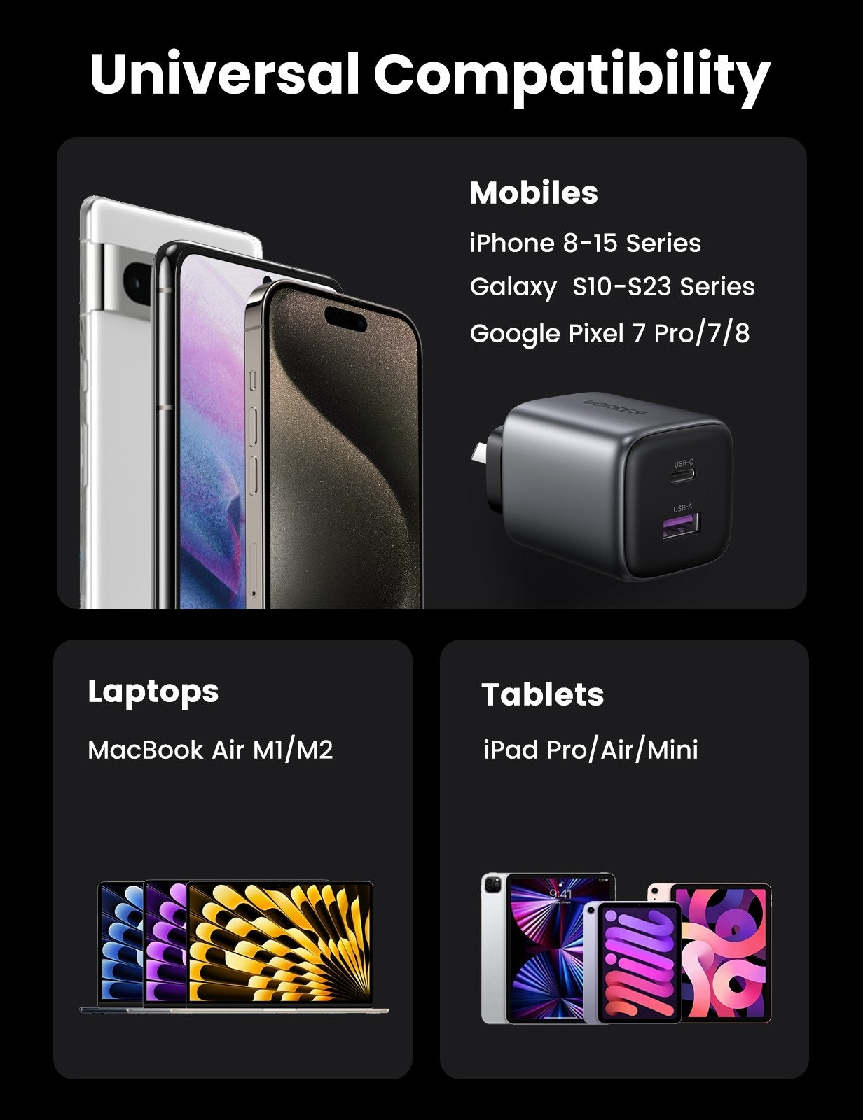 UGREEN 25112A Nexode 35W Dual Ports GaN Wall Power Charger