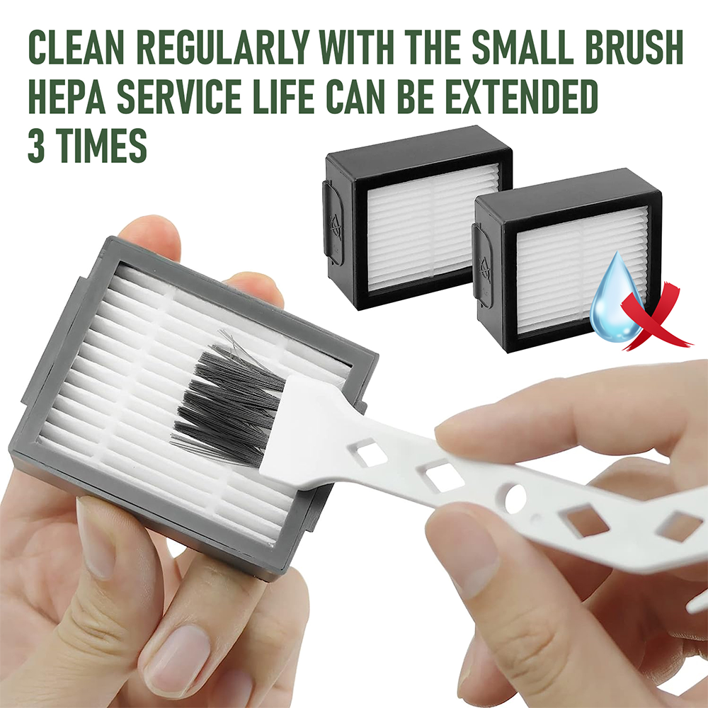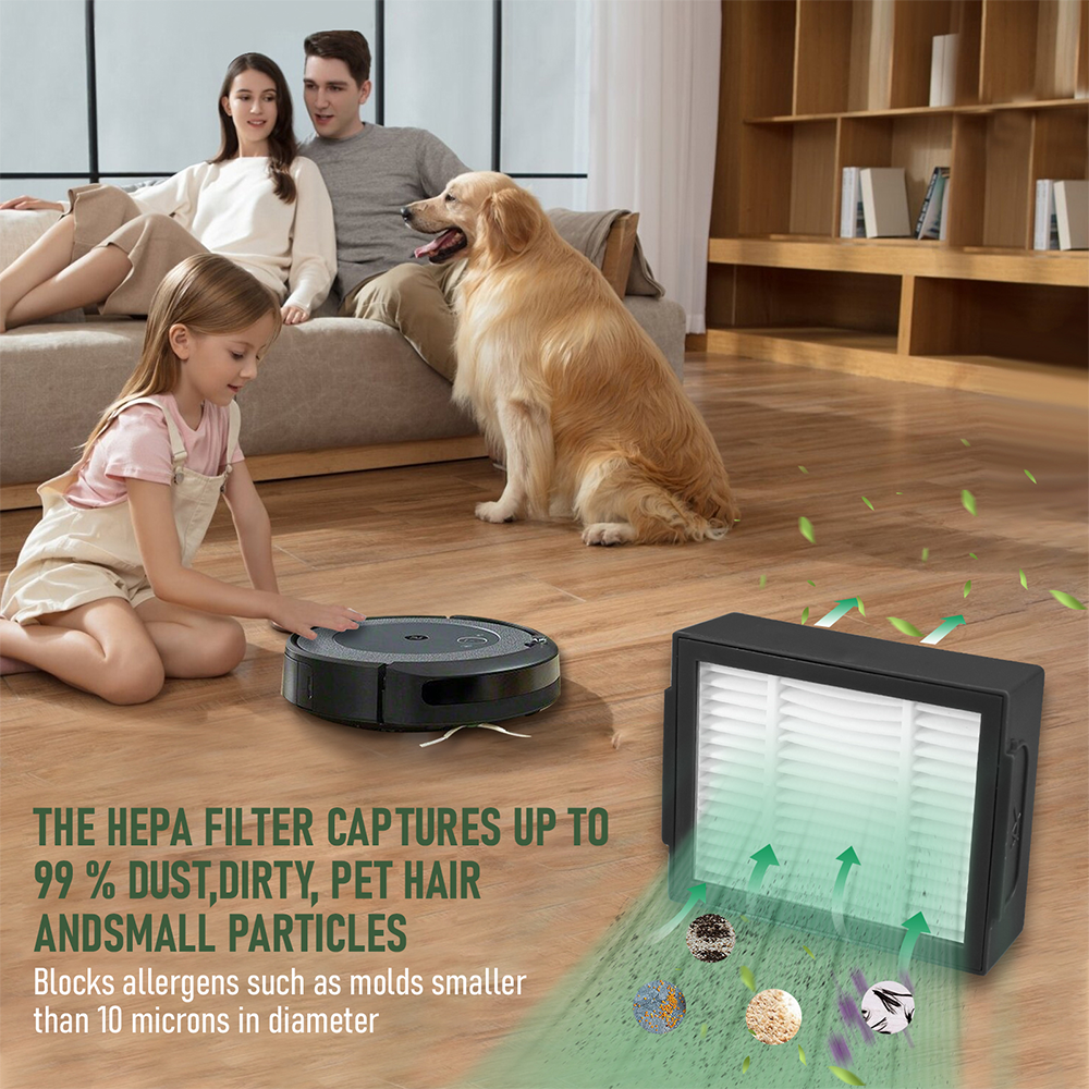 Tailored for iRobot Roomba models, this set ensures seamless integration and exceptional filtration, capturing particles as small as 0.3 microns. The flexible brush reaches deep corners. Regularly clean and replace parts to improve suction and performance and extends the life of your robot vacuum.