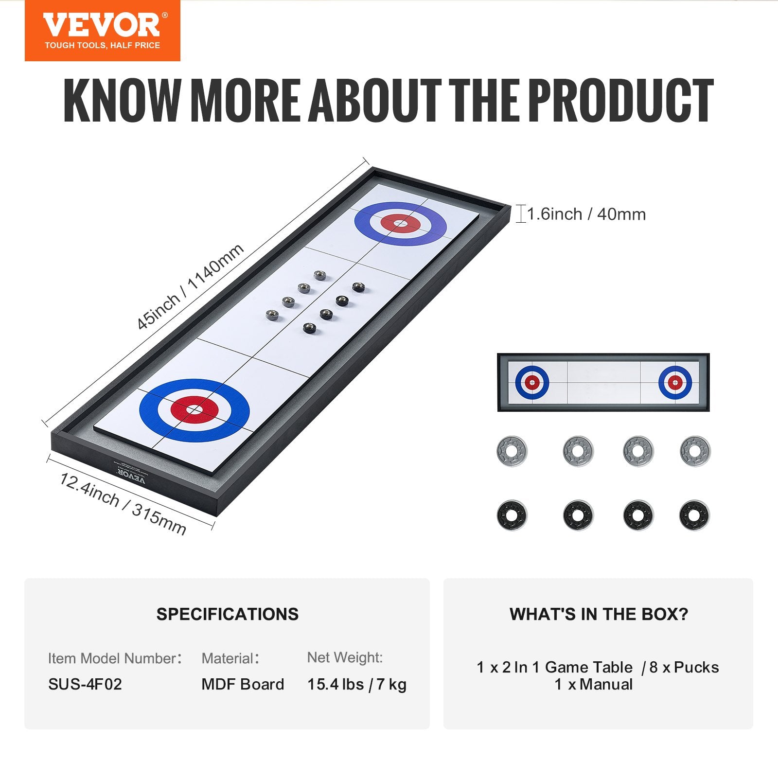Experience double the fun with your family, featuring shuffleboard on one side and curling on the other.
