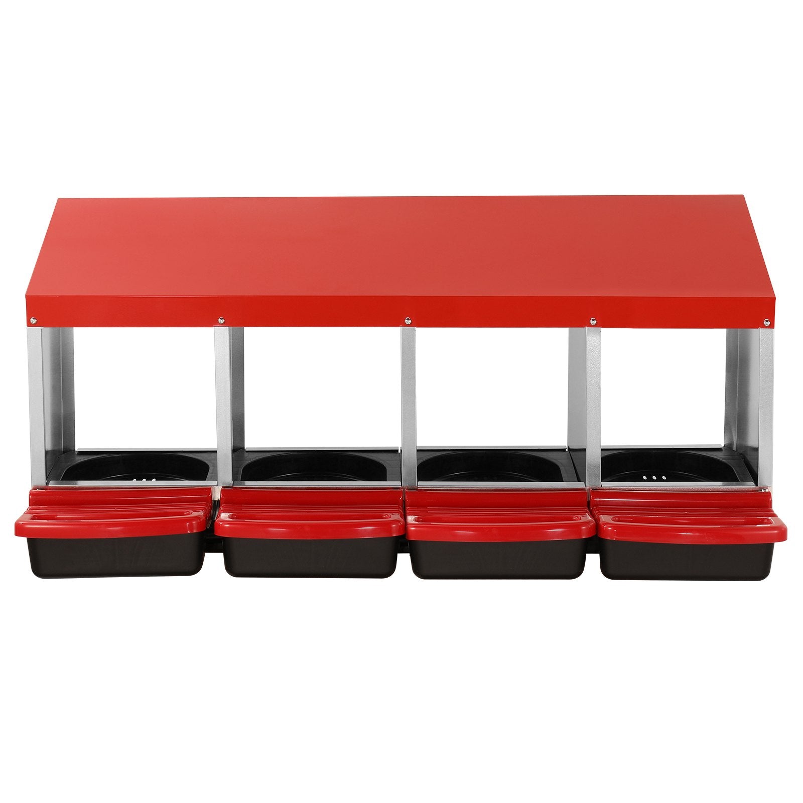 Durable 4-compartment metal chicken nest box with inclined nesting boxes for safe egg collection and easy cleaning.