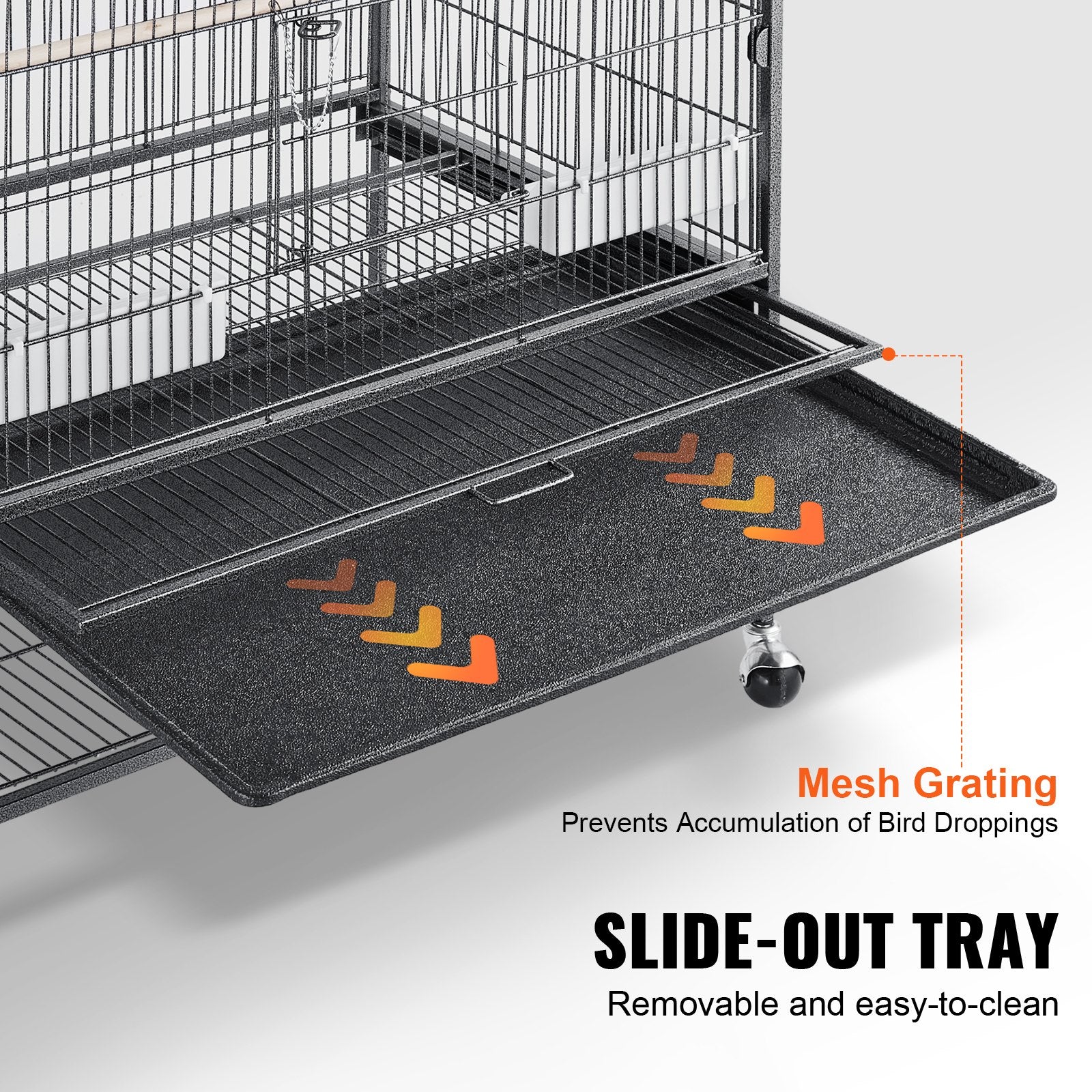 52-inch carbon steel bird cage with rolling stand and tray, designed for medium to small birds including parrots and cockatiels.