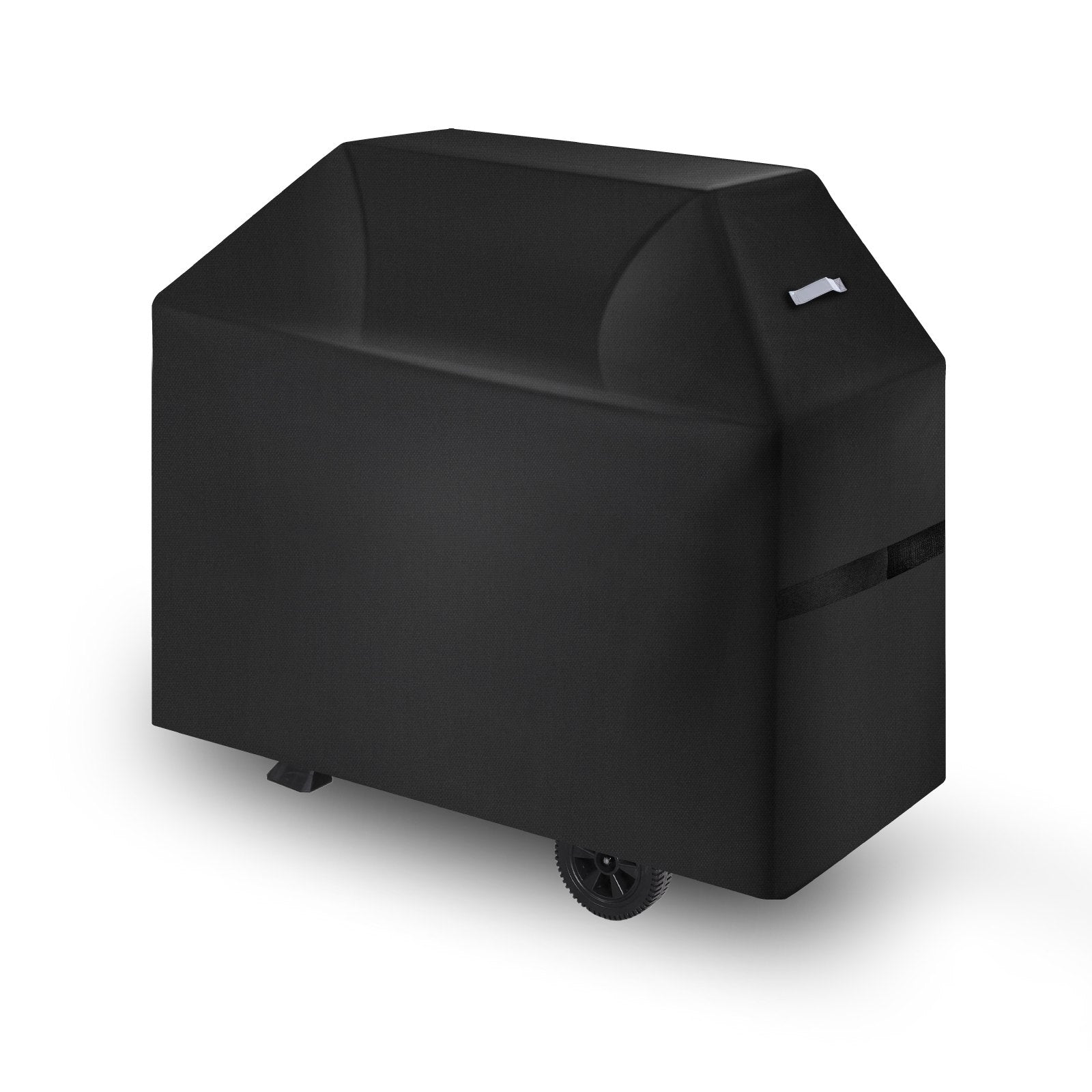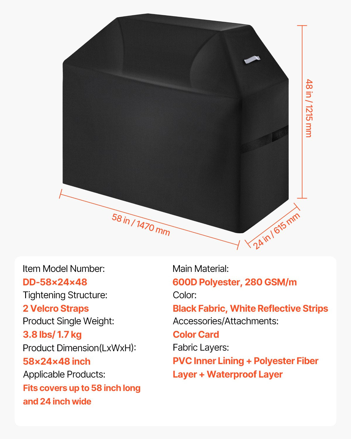 Heavy-duty 58-inch grill cover made from waterproof polyester fabric with reinforced corners for outdoor protection against weather elements.