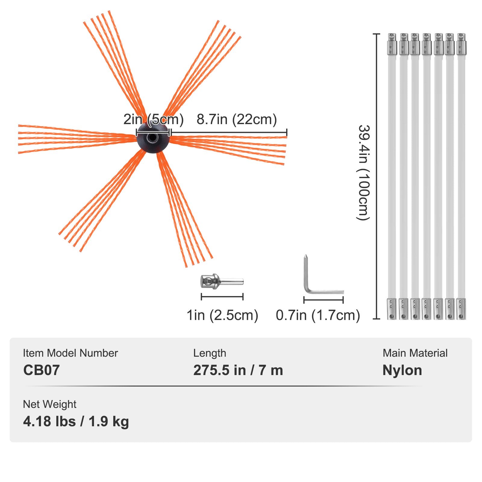 The bristles of the brush head are made from sturdy nylon rope, ensuring durability. Its special pointed rectangular shape allows for efficient cleaning without scratching the inner surface of the chimney.