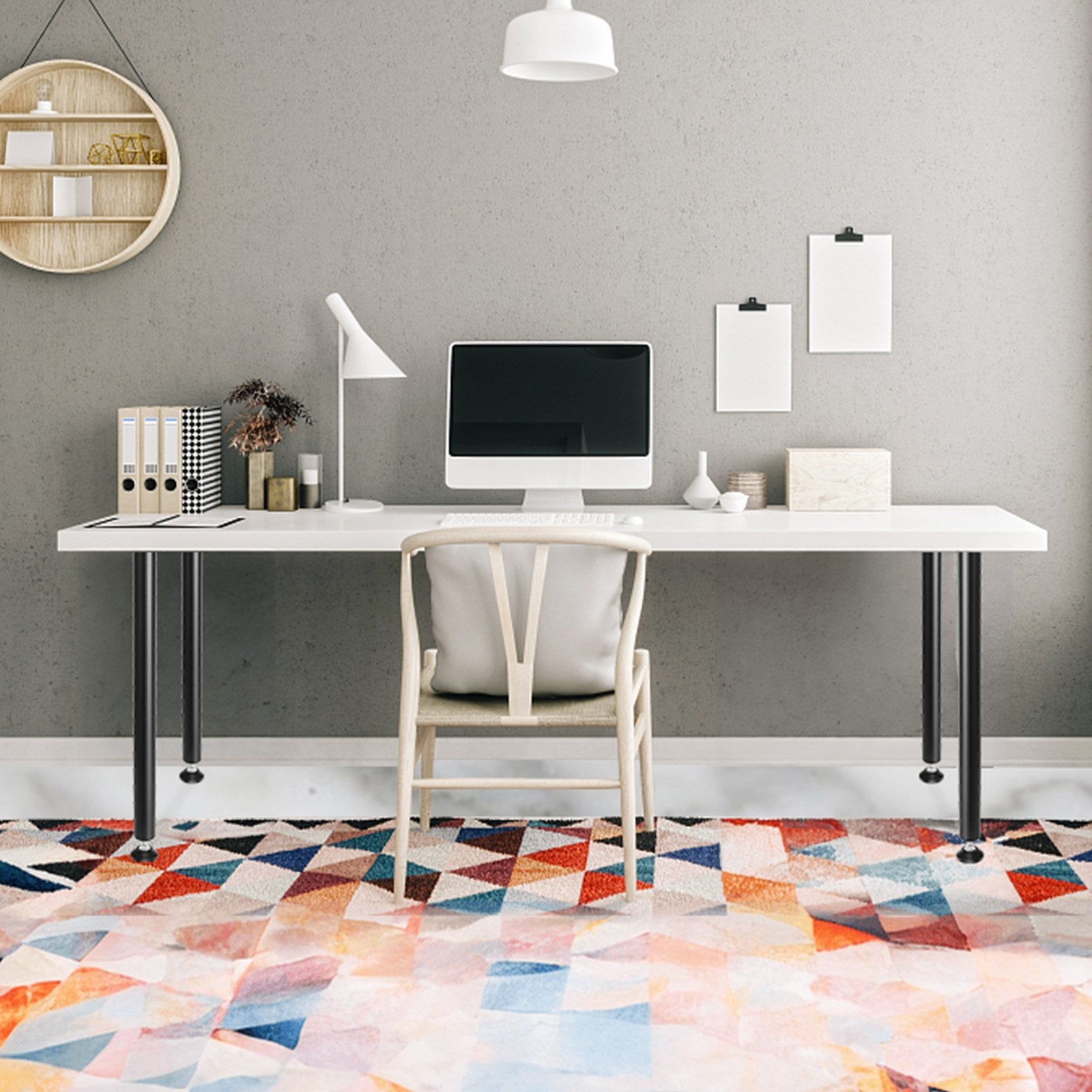 Set of 4 adjustable steel desk legs with a 544.3kg load capacity, featuring quick installation and adjustable foot cups for stability.