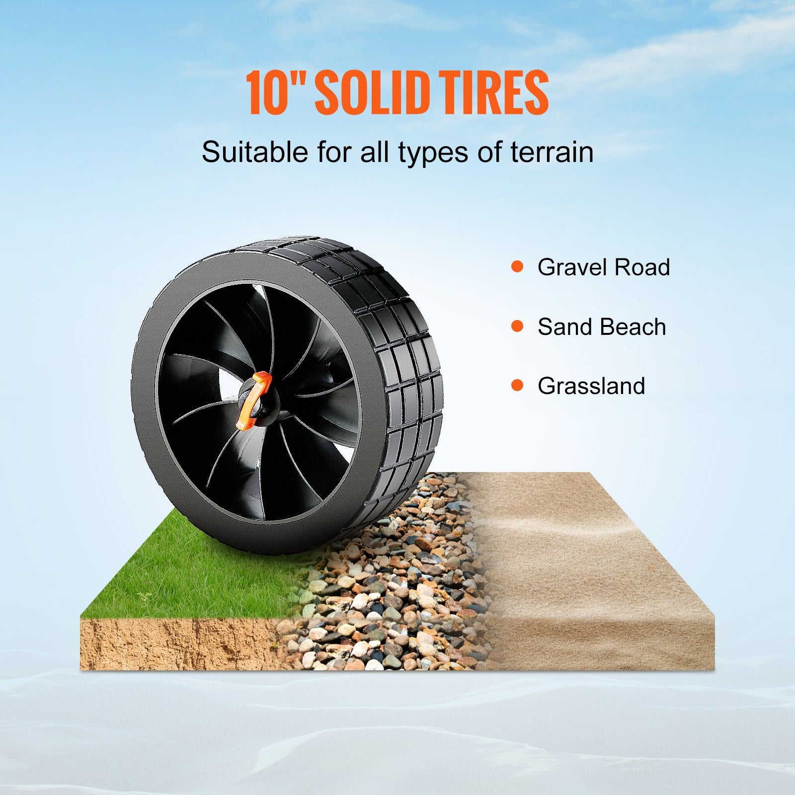 Adjustable kayak cart with 320 lbs load capacity and 10'' solid tires for easy transport on various terrains.