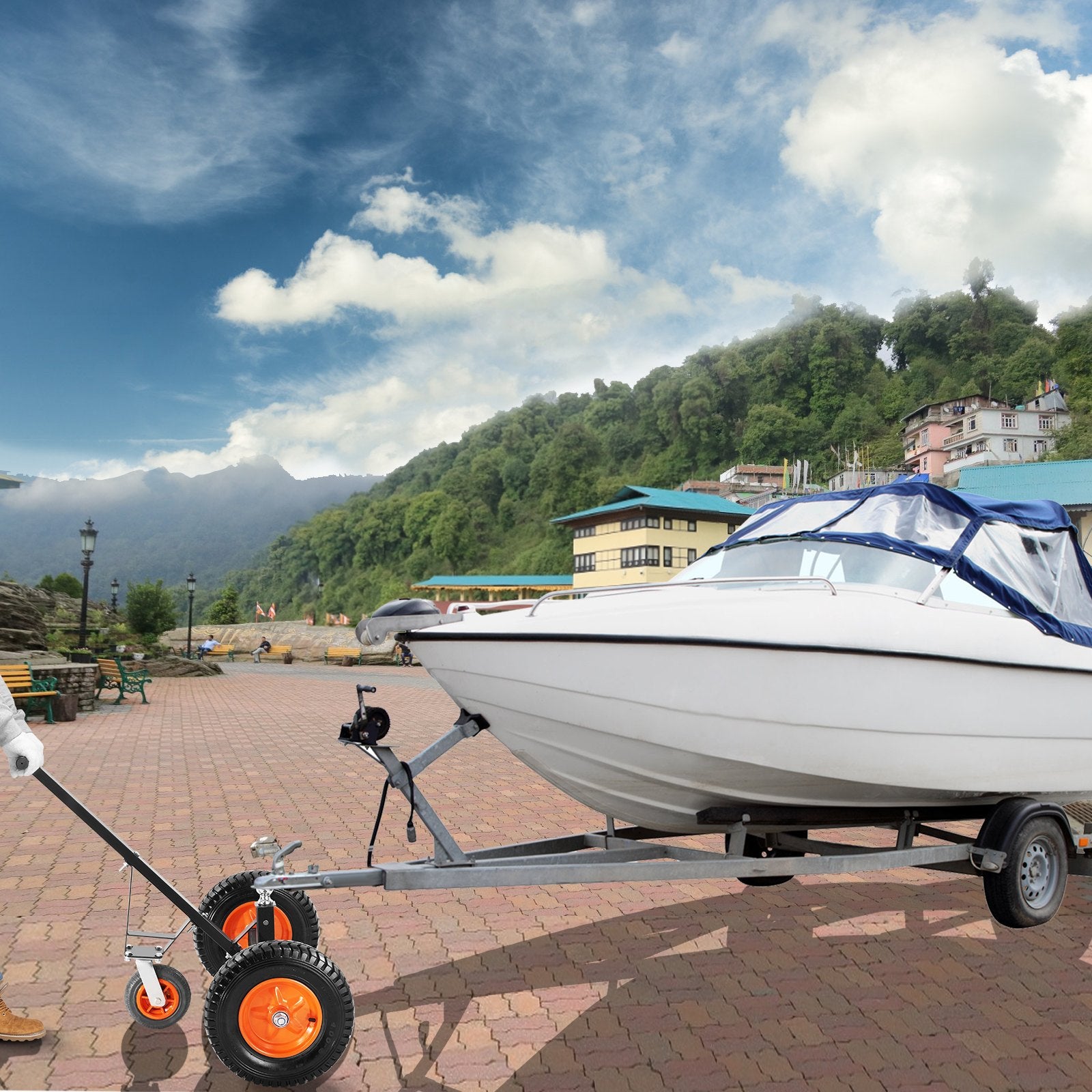 Adjustable trailer dolly with 1000 lbs tongue weight capacity, 19''-26'' adjustable height, 2'' ball, and 16'' pneumatic tires for versatile trailer moving.