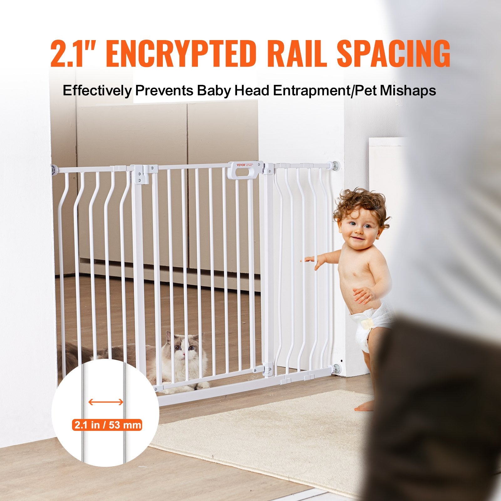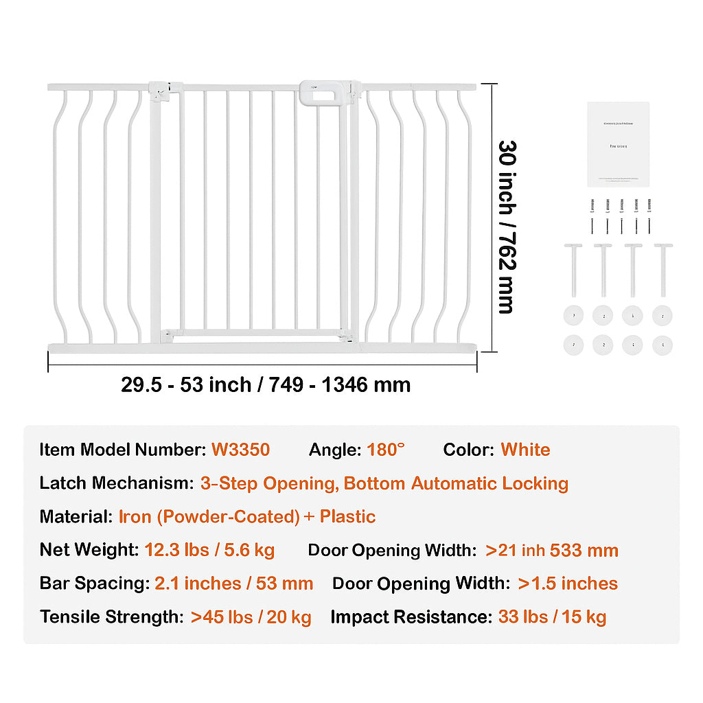 Extra wide and tall baby gate for doorways and stairs, featuring dual installation, auto-close, and a walk-through design for child and pet safety.