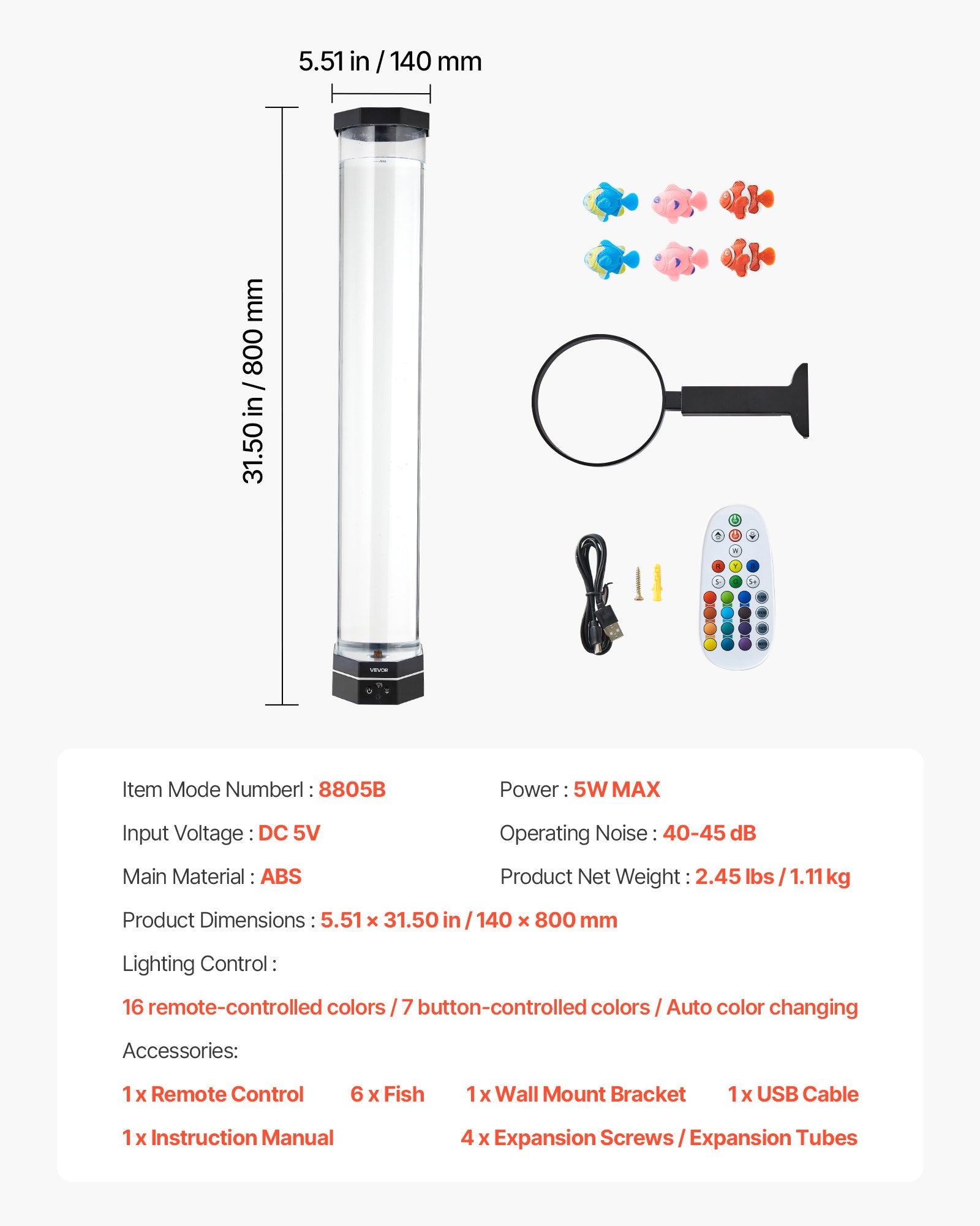 80 cm bubble tube lamp with 16 color options, designed for calming sensory effects and ambient lighting in various settings.